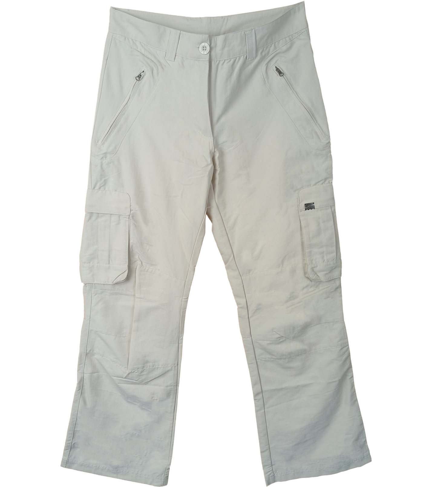 Dámske cargo nohavice sú praktickou a pohodlnou voľbou pre voľný čas aj aktívny pohyb. Nohavice majú klasické zipsy na gombík, pútka na pásku a niekoľko funkčných vreciek – dve predné vrecká na zips a rovné bočné vrecká na stehnách.