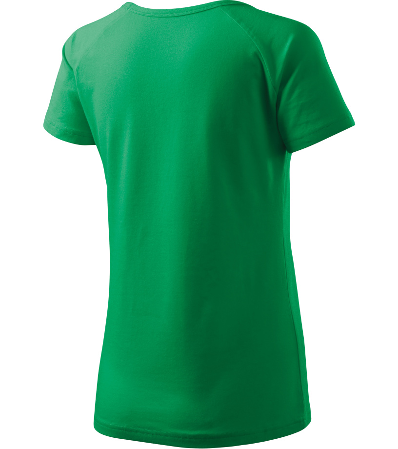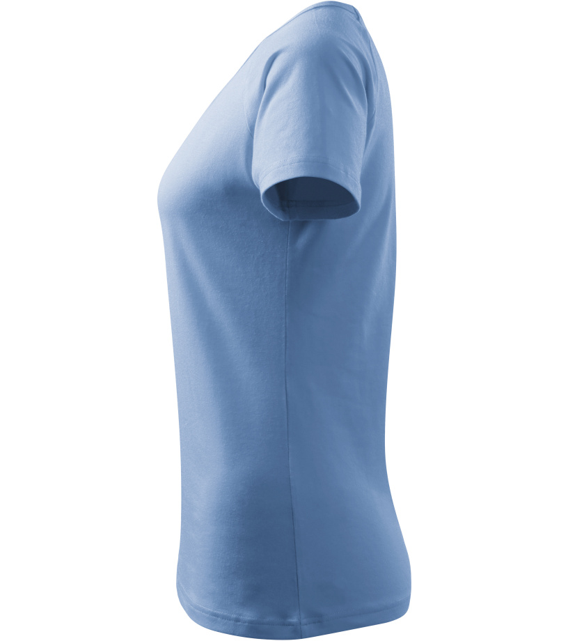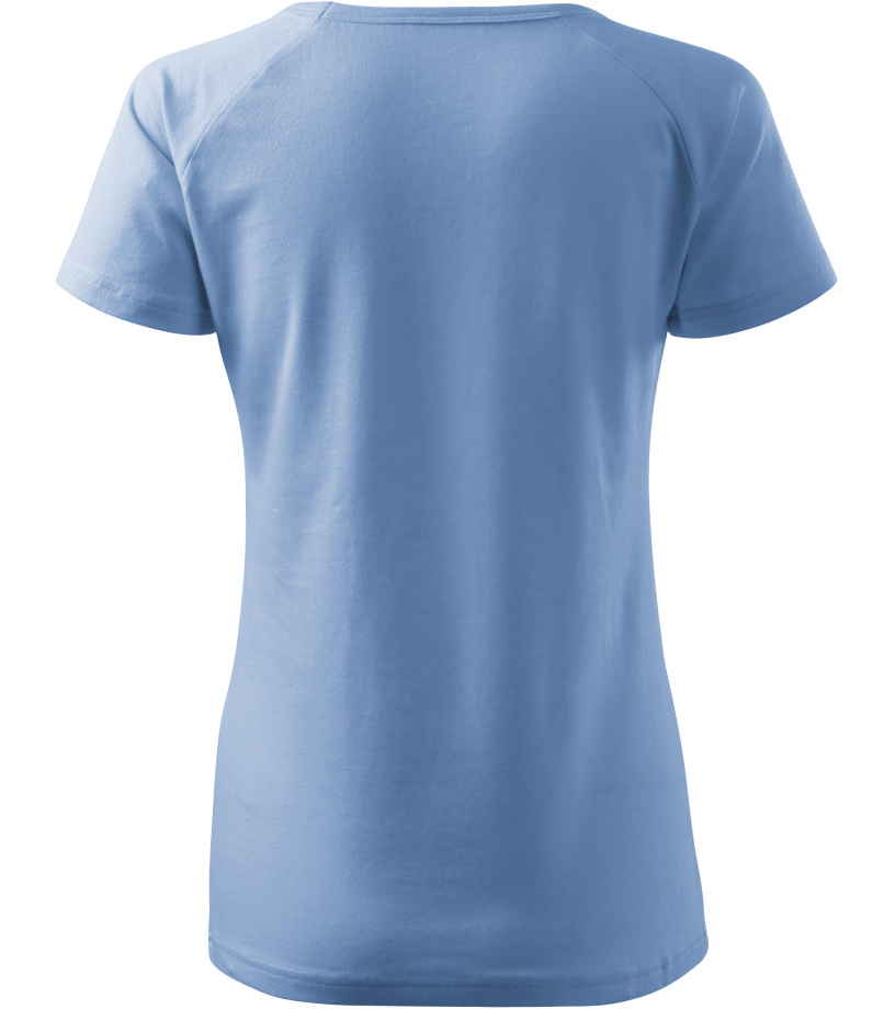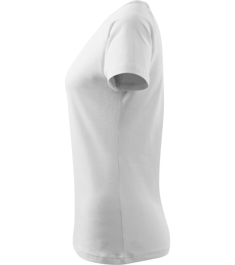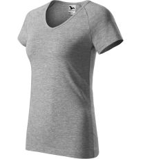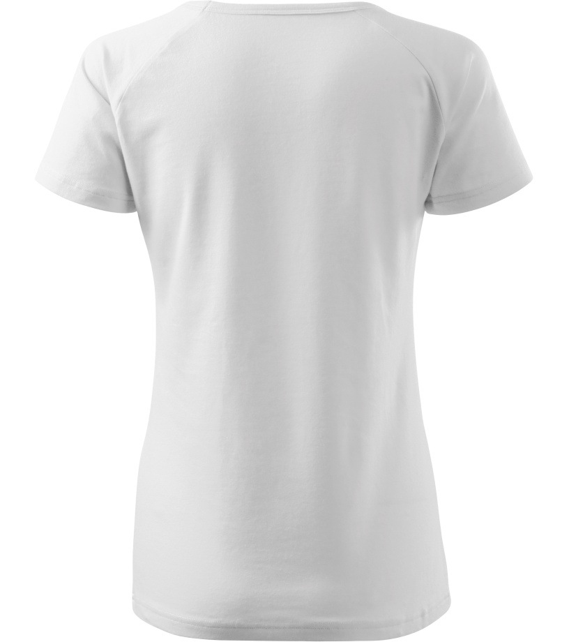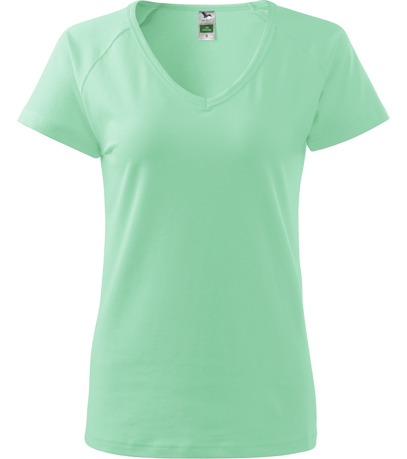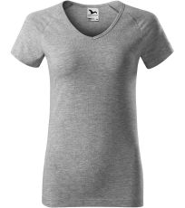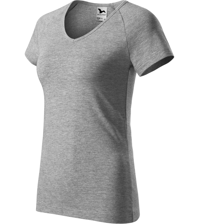 Kvalitné dámske tričko s priliehavým strihom s bočnými švami, výstrihom do V a krátkymi raglánovými rukávmi vyrobené zo strečového materiálu, ktorý si zachováva tvarovú stálosť vhodné na potlač a výšivky má výstrih podšitý vrchným materiálom