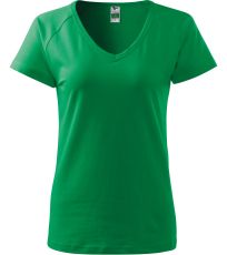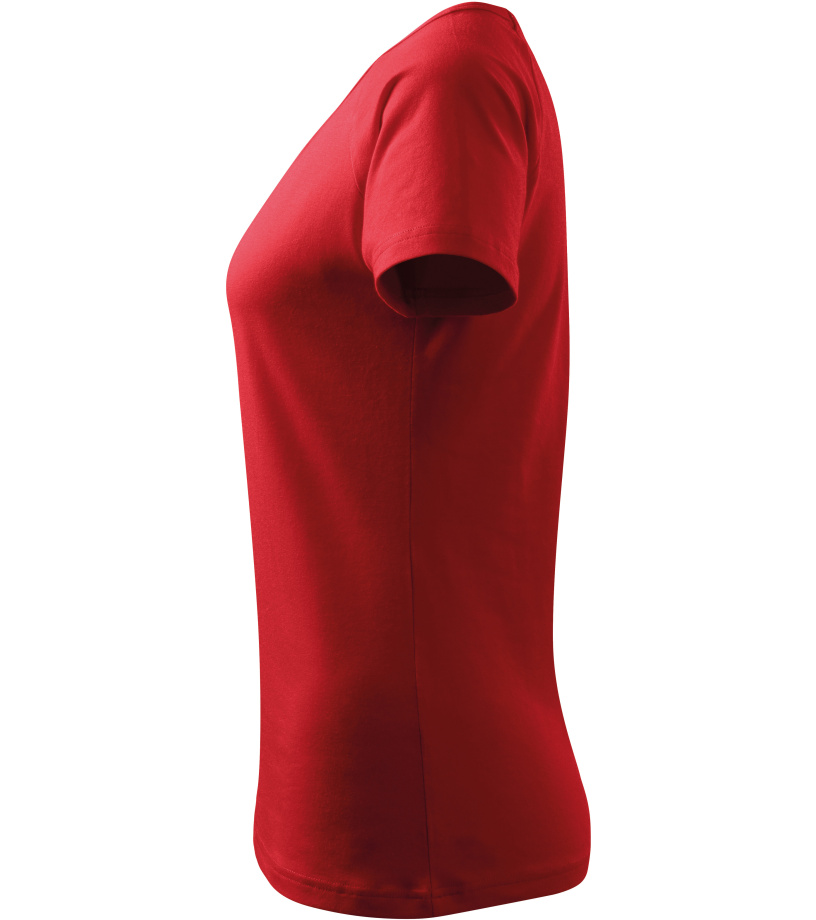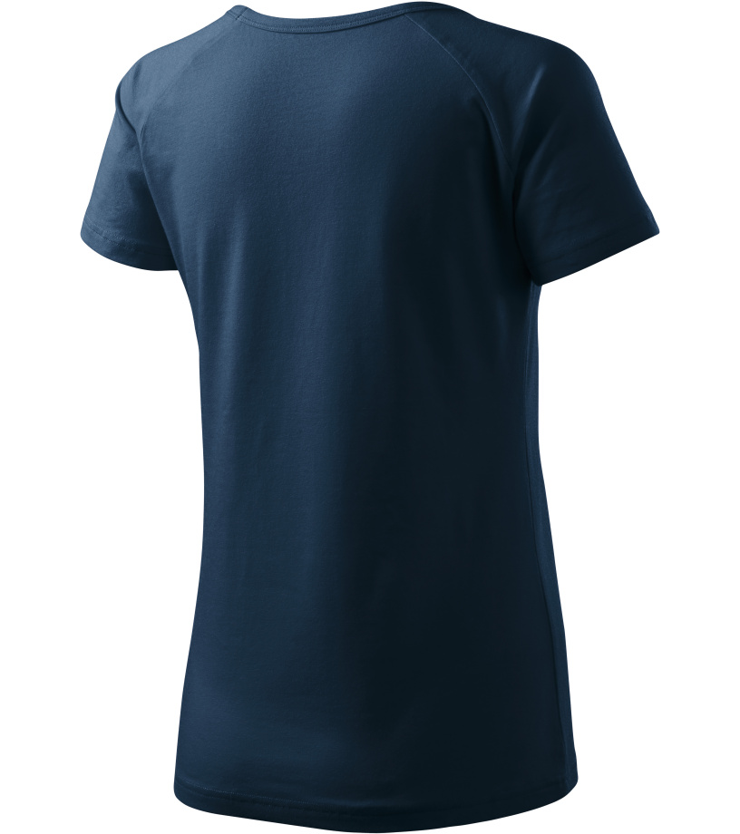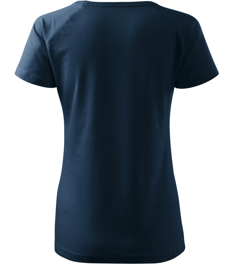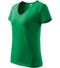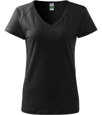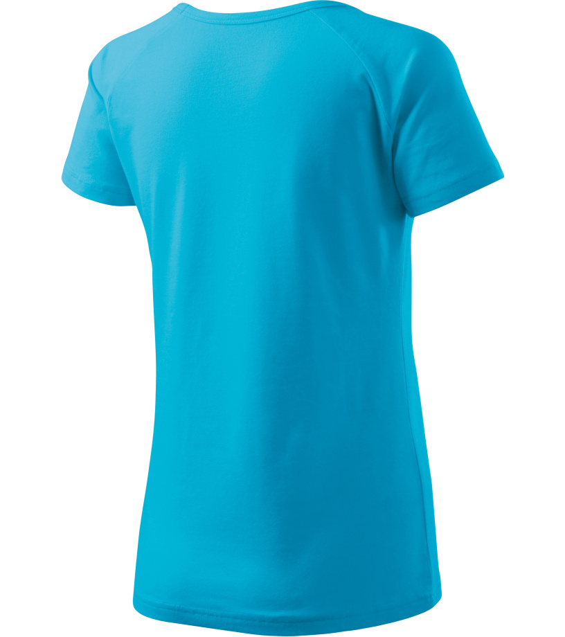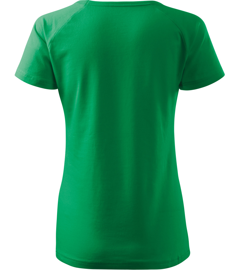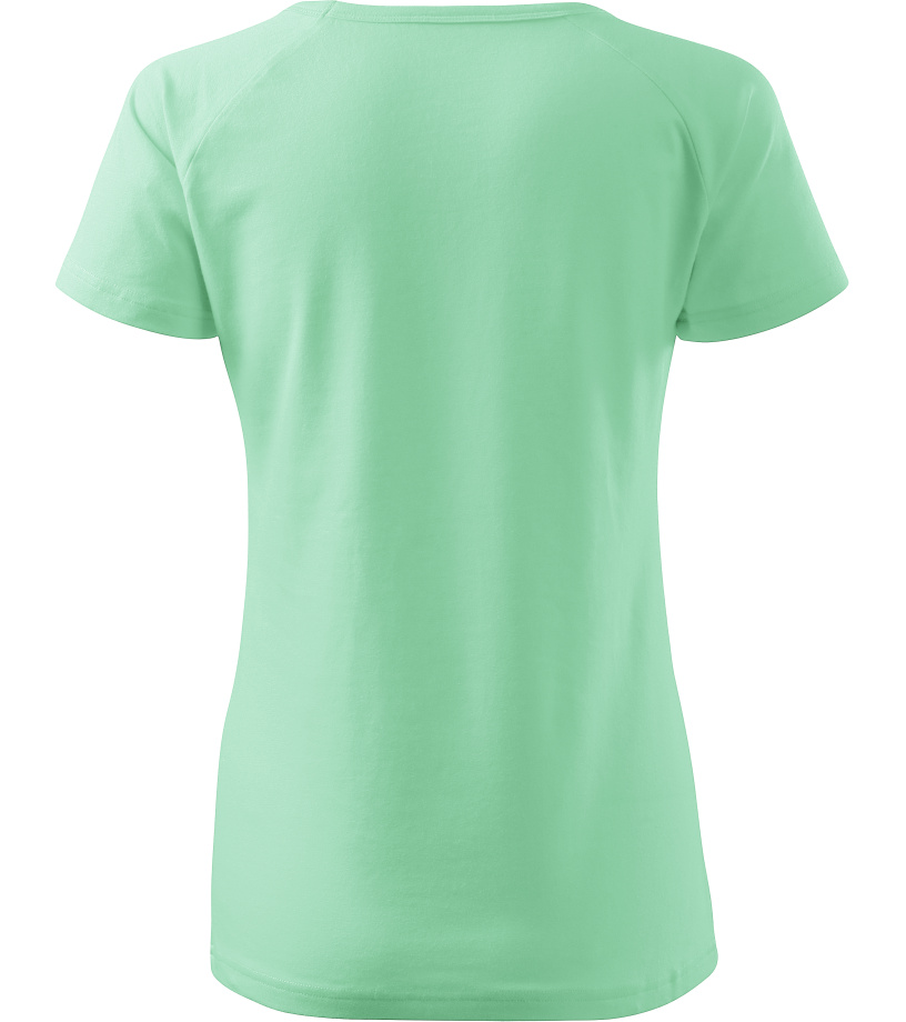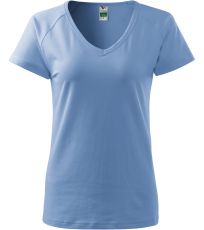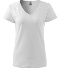 Kvalitné dámske tričko s priliehavým strihom s bočnými švami, výstrihom do V a krátkymi raglánovými rukávmi vyrobené zo strečového materiálu, ktorý si zachováva tvarovú stálosť vhodné na potlač a výšivky má výstrih podšitý vrchným materiálom