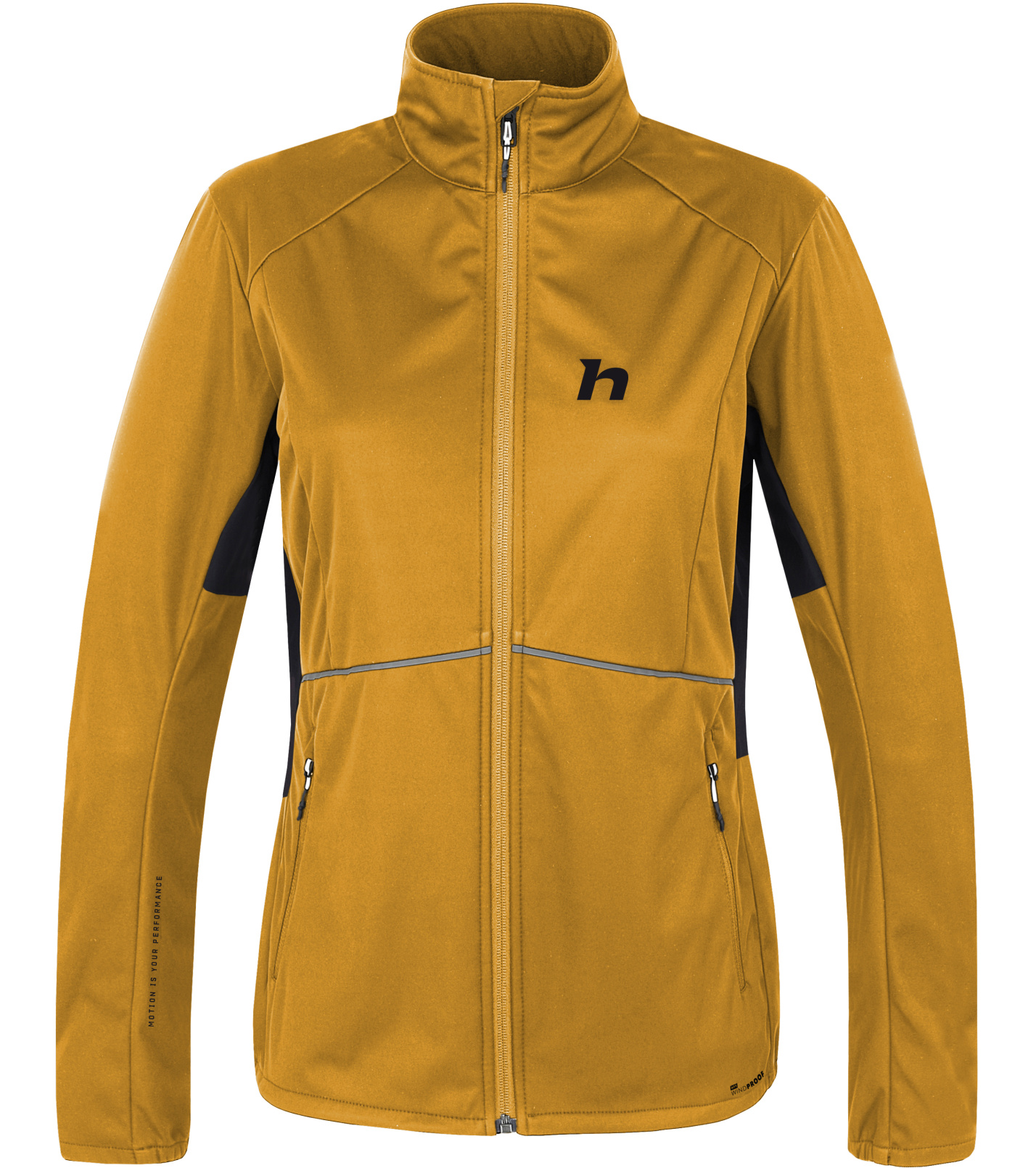 reverzní dlouhý zip a stojáček, hlavní kapsy na zip, anatomicky tvarované rukávy, zakončené do gumy, spodní kraj stažený do gumy, přední díl z větruodolného materiálu, zadní díl z prodyšného materiálu, reflexní prvky