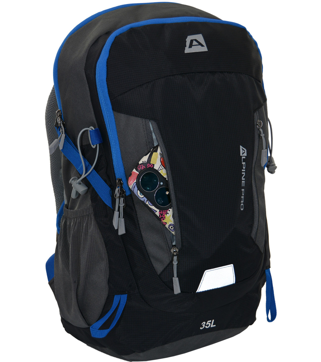 Outdoorový batoh SEDE s objemom 35 litrov je ideálny na každodenné použitie v meste, na dovolenke, výletoch i outdoorových aktivitách v prírode. Je vyrobený z vodeodolného materiálu a ponúka dve komory pre praktickú a efektívnu organizáciu. Je vybavený vystuženými bedrovými pásmi, polohovateľnými a vystuženými ramennými popruhmi, ktoré zaisťujú maximálne pohodlie. Praktické vrecká na drobné mince, kreditné karty, predné vrecko na zips, bočné vrecká zo sieťoviny a integrovaná nádoba na nápoje so sacou trubicou poskytujú dostatok priestoru pre všetko potrebné. Batoh obsahuje aj praktickú pláštenku a super píšťalku, má dlhé úchyty zipsov pre ľahkú manipuláciu a kompresné sťahovanie pre prispôsobenie objemu. Vďaka chrbtovému systému Air Channel a náprsnému sťahovaciemu popruhu je pohodlný aj pri dlhšom nosení. Reflexné prúžky zaisťujú lepšiu viditeľnosť.