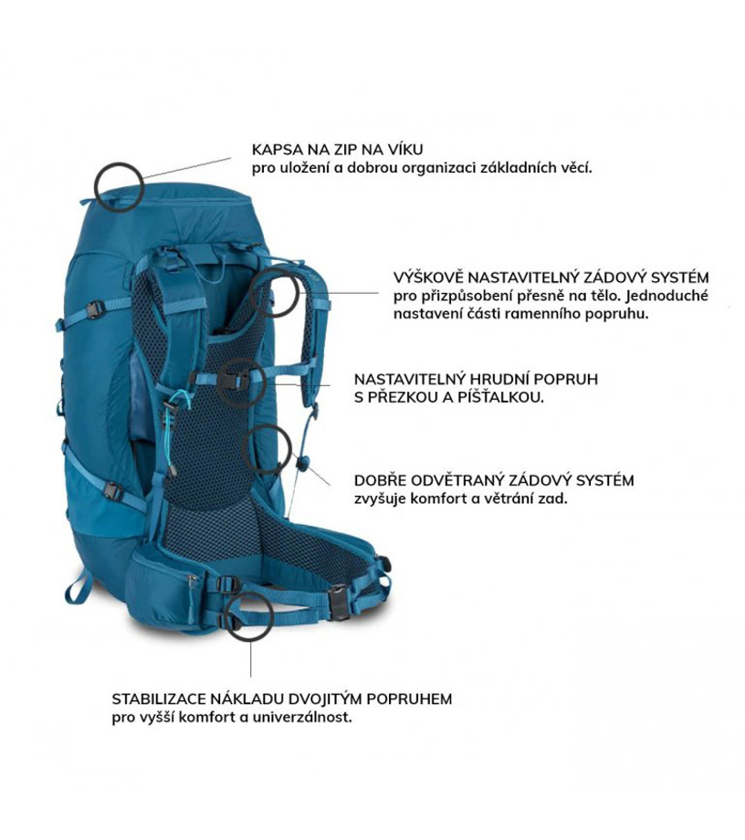 Stabilizácia zaťaženia dvojitými popruhmi na ramenných popruhoch a bedrovom páse
