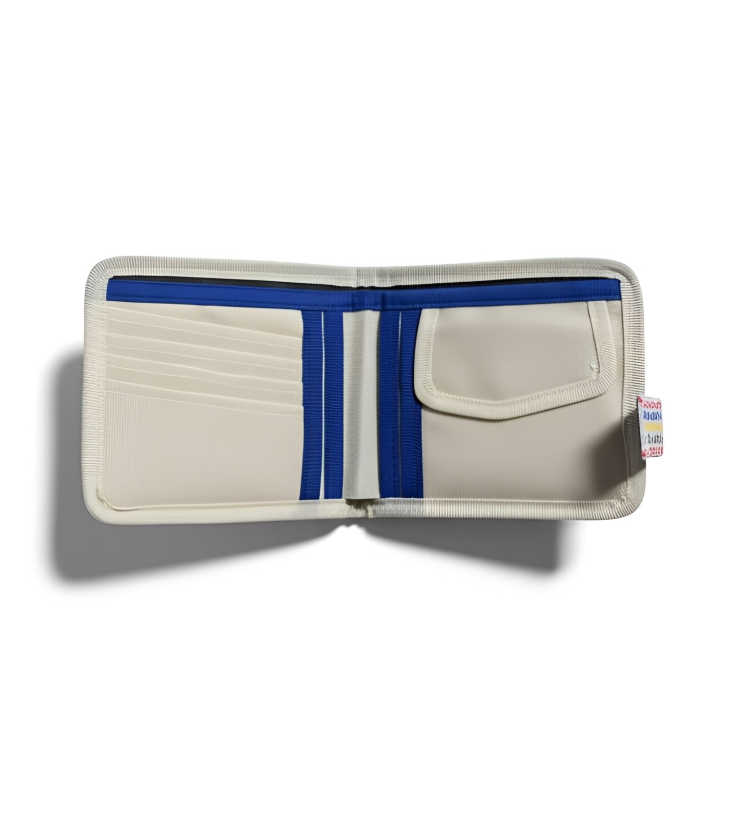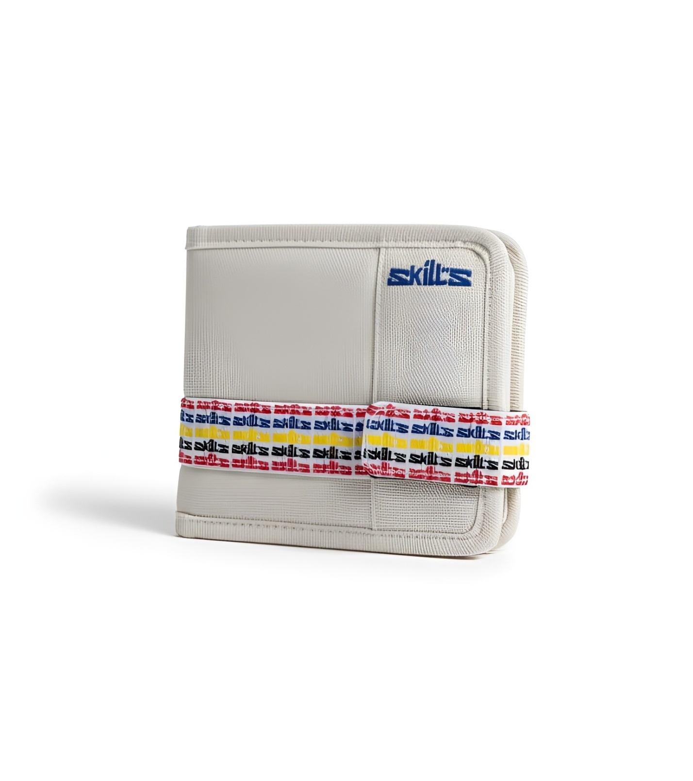 Minimalistická peňaženka s farebnými nápismi Skill's. Vnútri má 4 priehradky na karty, 1 na bankovky a 1 zapínaciu na drobné.