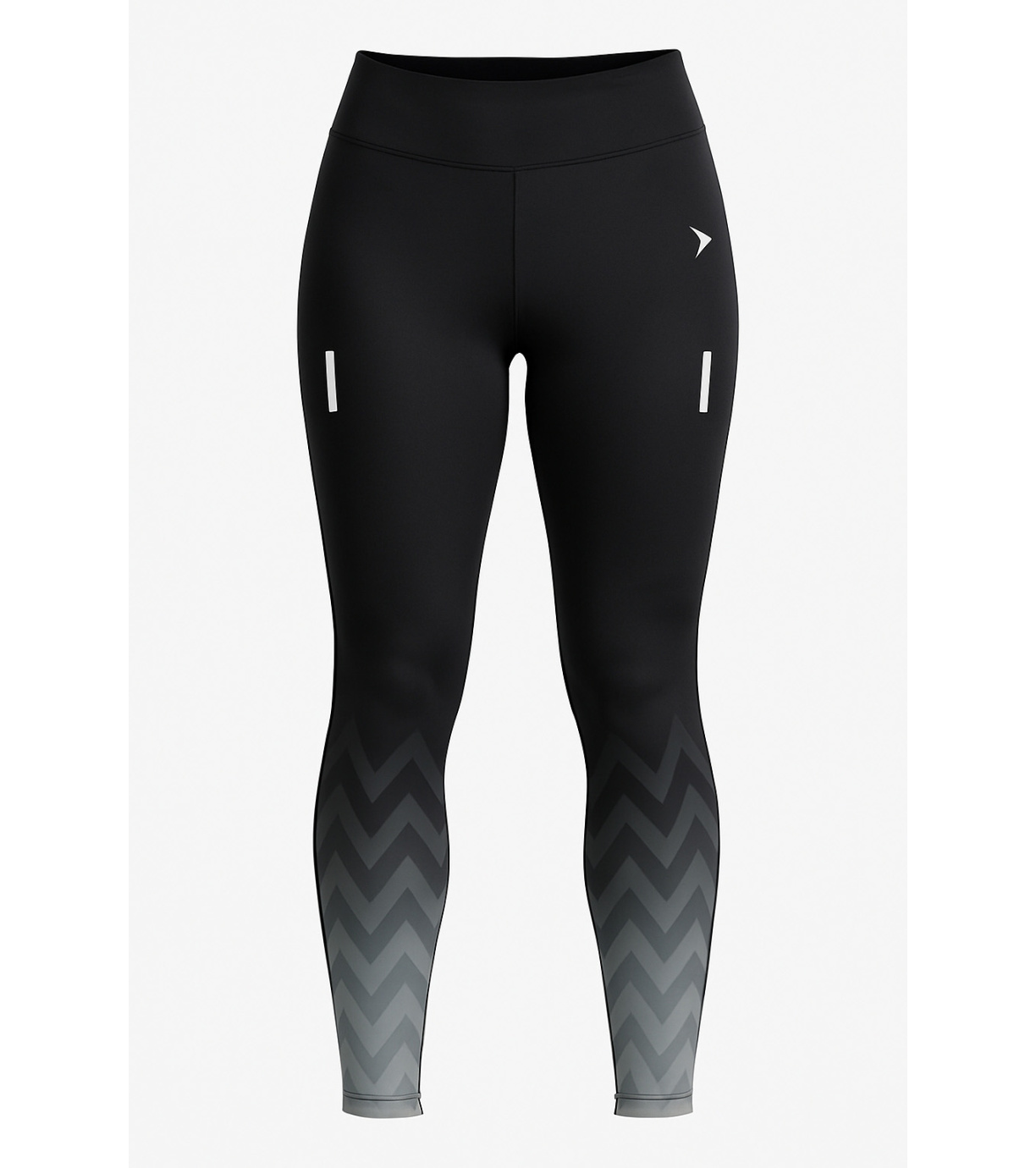Dámske športové legíny v elegantnej čiernej farbe s decentným šedým vzorom na spodnej časti nohavíc sú ideálne na beh, fitness aj iné športové aktivity. Sú vyrobené z pružného, priedušného a rýchloschnúceho materiálu, ktorý sa dokonale prispôsobí postave a poskytuje maximálne pohodlie pri pohybe. Legíny majú široký pás pre isté držanie, reflexné prvky pre lepšiu viditeľnosť a praktické vrecko na drobnosti. Štýl a funkčnosť v jednom.