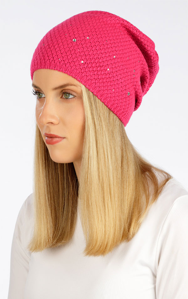 Pletenina. Vnútri fleecová podšívka. Kamienky Swarowski.