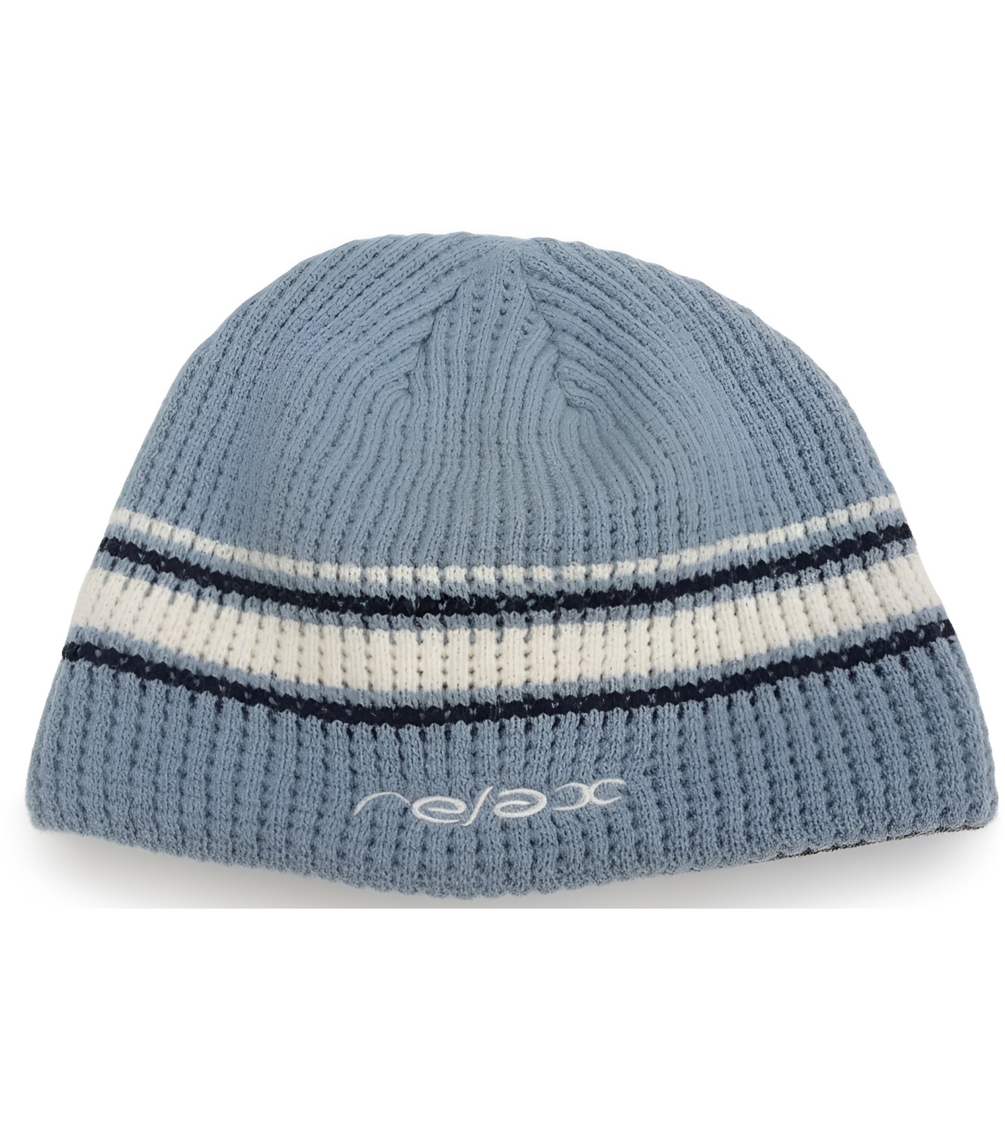 Táto pletená zimná čiapka Relax je praktickým a štýlovým doplnkom pre chladné dni. Vyrobená je z mäkkého a hrejivého materiálu, ktorý zaisťuje pohodlie pri každodennom nosení. Dizajn tvorí rebrovaná štruktúra v modrej farbe doplnená o biele a tmavo modré pruhy, vďaka čomu pôsobí športovo a univerzálne. Na prednej strane nechýba decentné vyšívané logo Relax.