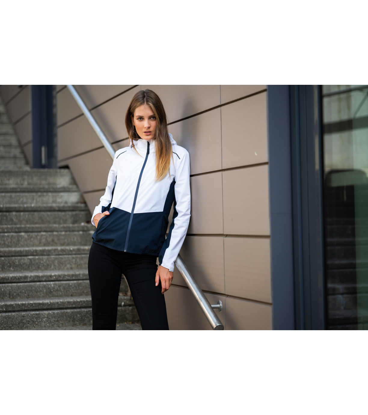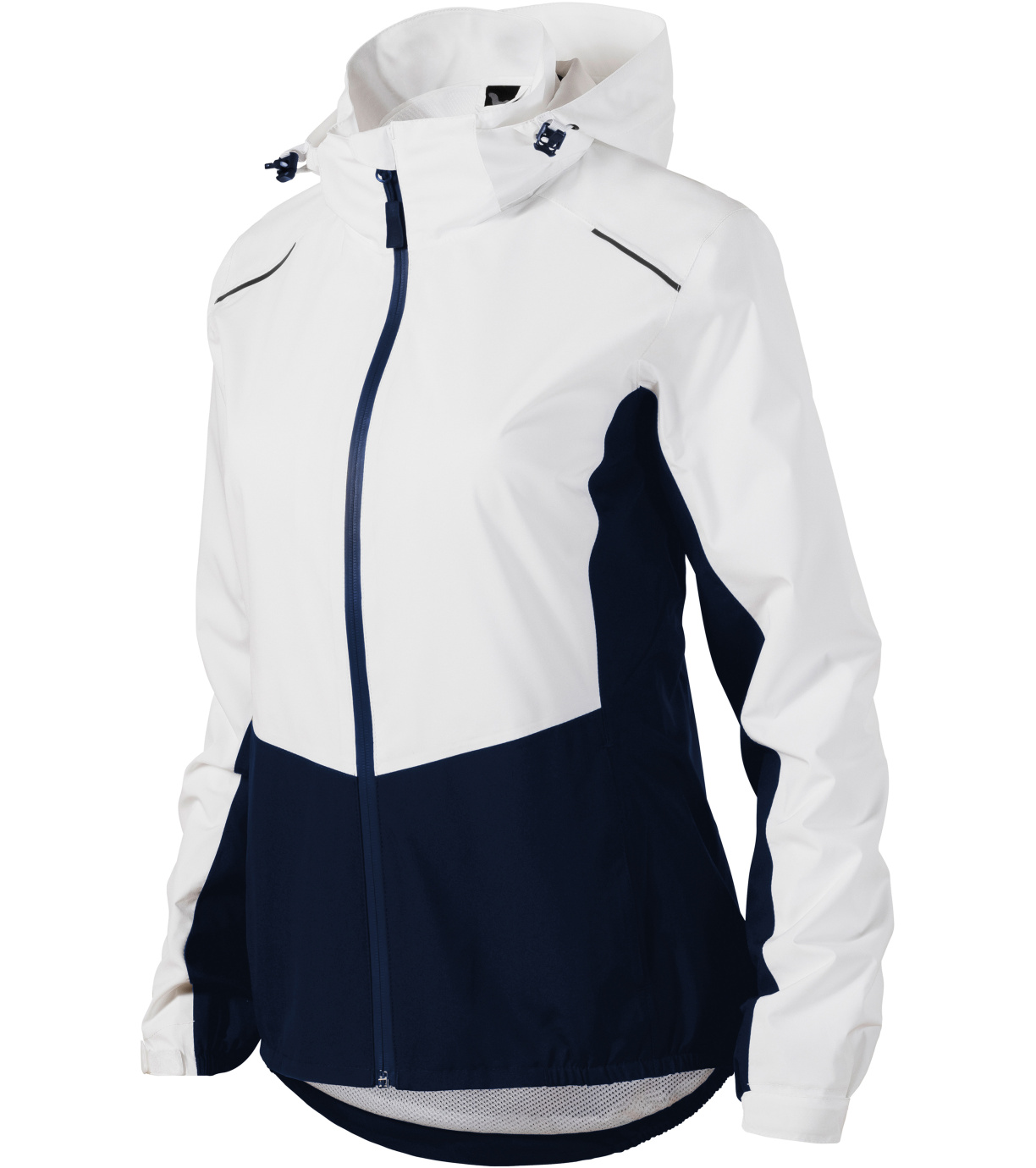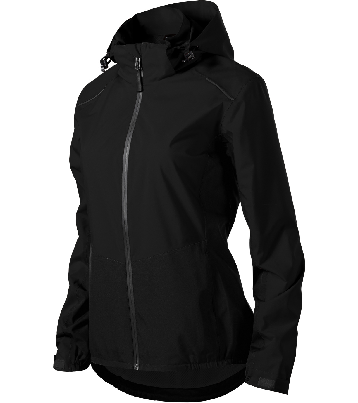 Dámska outdoorová bunda, ľahký vodeodolný materiál s membránou, úprava BIONIC FINISH® ECO zabraňujúca prieniku vody, strih tvarovaný bočnými dielmi, vodeodolný zips zakončený krytkou brady, odnímateľná kapucňa na stiahnutie šnúrkou, lemy rukávov nastaviteľné suchým zipsom vnútorné náprsné vrecko na suchý zips, podlepené švy, vstup pre branding v bočnom šve podšívky, tvarovaný a mierne predĺžený zadný diel, dolný okraj stiahnutý gumičkou v bočnej časti, odvetrávanie v zadnej časti, reflexné prvky.
