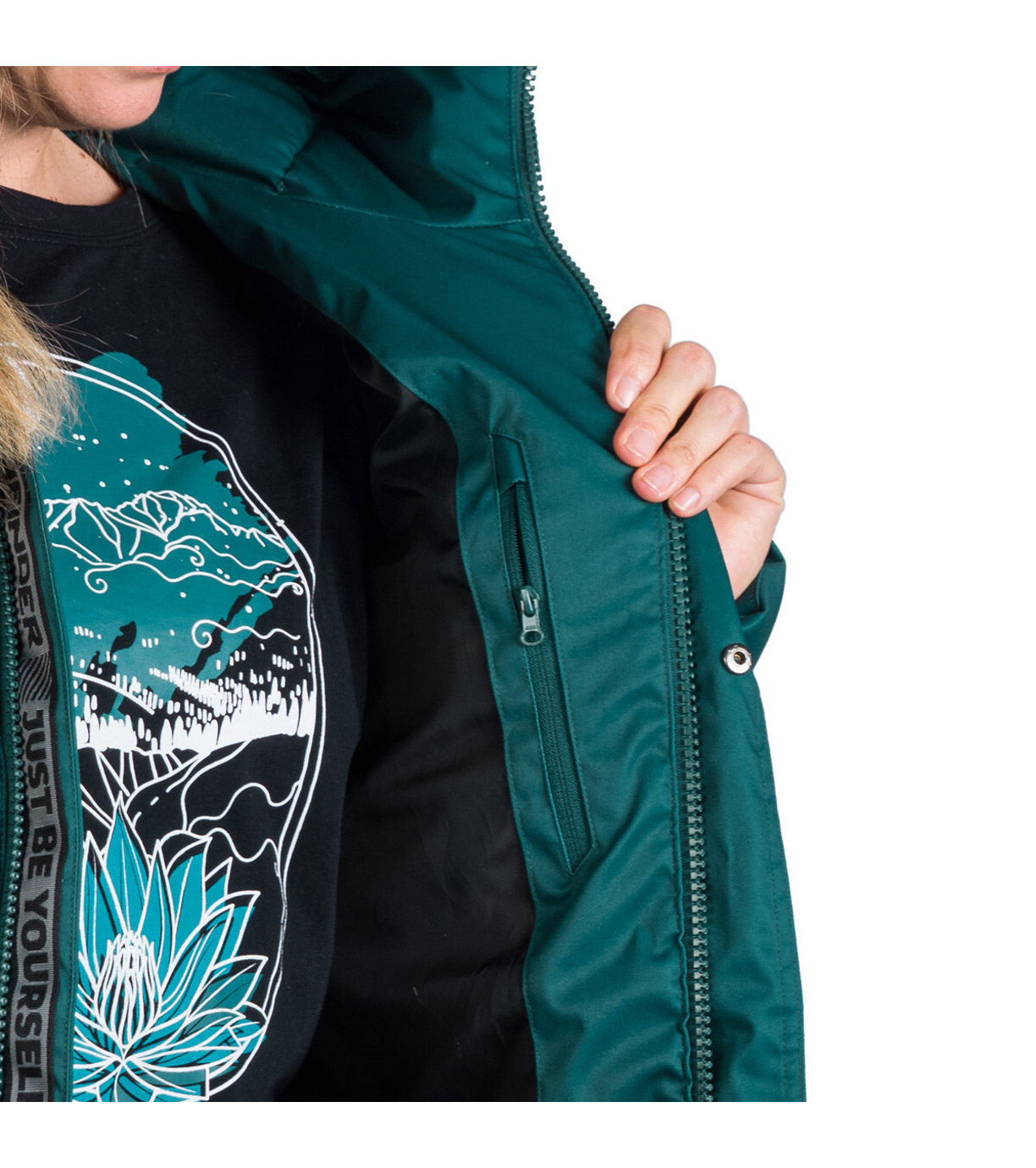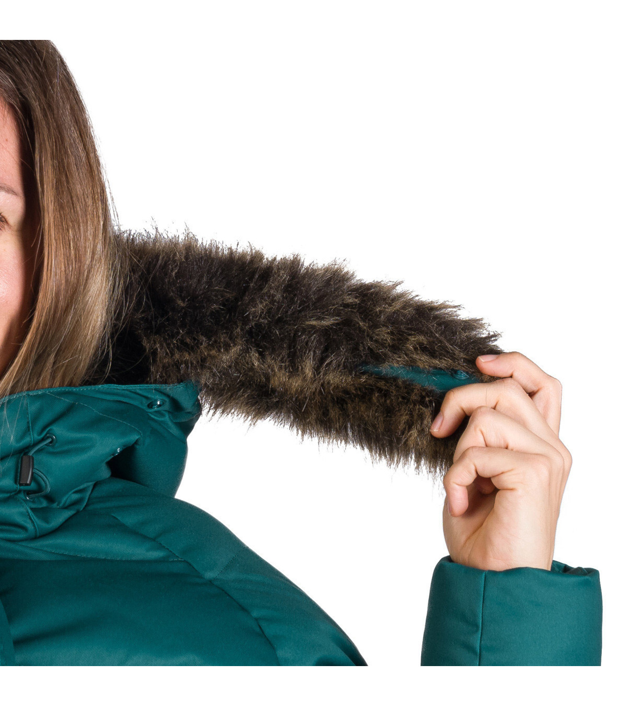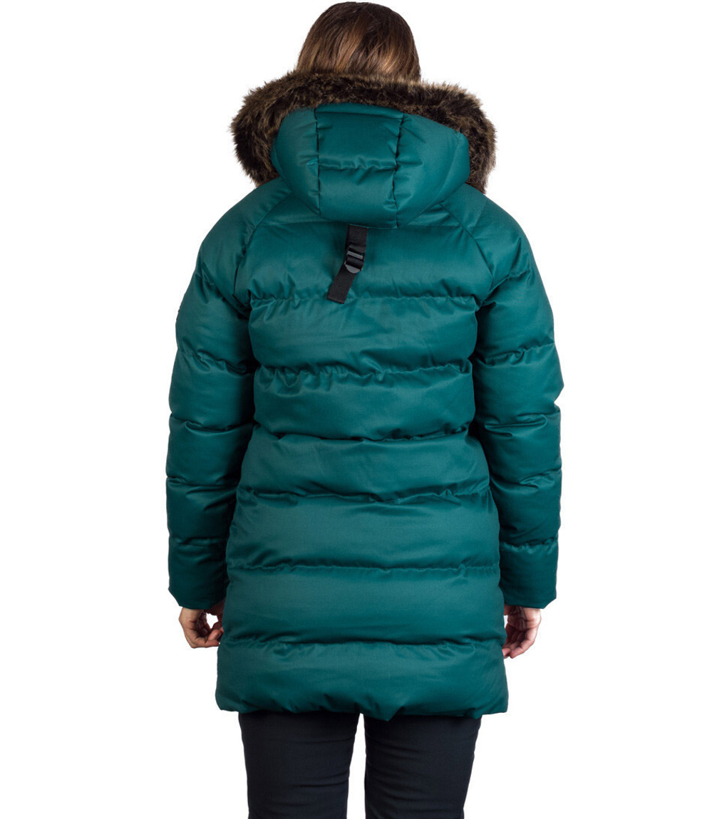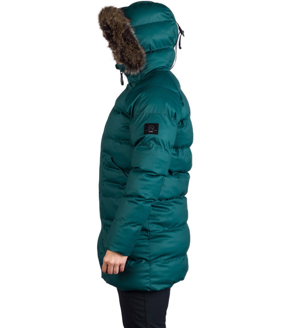 Dámska zimná bunda vhodná do mesta aj na hory. Má pevnejší materiál s keprovou väzbou a vodeodolnou úpravou. Bunda je veľmi teplá, ochráni tak aj vo väčších mrazoch. Kožušina na golieri je syntetická a ľahko odpínateľná. Strihovo je bunda ľahko vytvarovaná okolo pása s jemne predĺženou dĺžkou pod bokmi. Dve veľké vrecká na prednom diele sú zaujímavým ozdobným prvkom, na vnútornej strane bundy je navyše malé vrecko na zips na drobnosti. Na vnútornej strane rukávov nájdete elastické manžety, ktoré pekne priľnú k zápästiu a zabránia tak prefúknutiu.