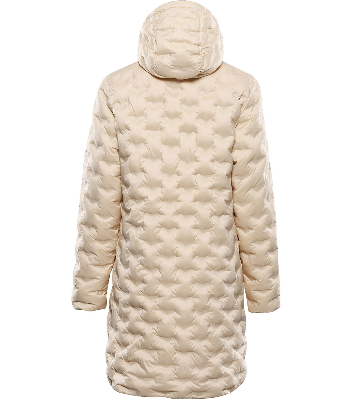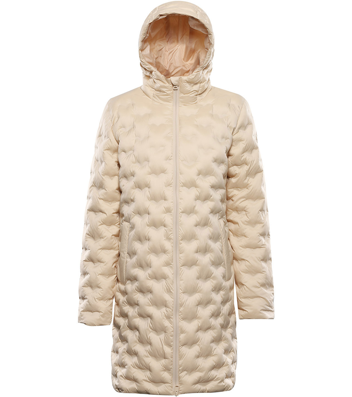 Dámsky zimný kabát AWEDA 2 je skvelou voľbou pre všetkých, ktorí hľadajú kombináciu štýlu a praktickosti. Tento dlhší prešívaný kabát s embosovaným vzorom je vyrobený z ultraľahkého, vodoodpudivého materiálu so špeciálnou záterovou úpravou, ktorá chráni pred vlhkosťou a zvyšuje komfort pri nosení ako v meste, tak v prírode. Stredne silná hrejivá výplň spoľahlivo udrží teplo, zatiaľ čo voľnejší strih HI-THERM umožňuje pohodlné vrstvenie oblečenia a neobmedzuje pohyb.