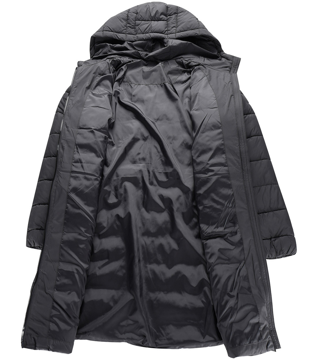 Strih je polopriliehavý, čo zaisťuje pohodlné nosenie aj voľnosť pohybu, zatiaľ čo dekoratívne prešitie dodáva kabátu moderný a ženský vzhľad. Praktická kapucňa je pevná a chráni pred vetrom aj chladom. Súčasťou kabátu sú aj dve vrecká, vhodné na uloženie drobností alebo zahriatie rúk. Celkový dizajn dopĺňa decentná nášivka na rukáve, ktorá podčiarkuje športovo-elegantný štýl.
