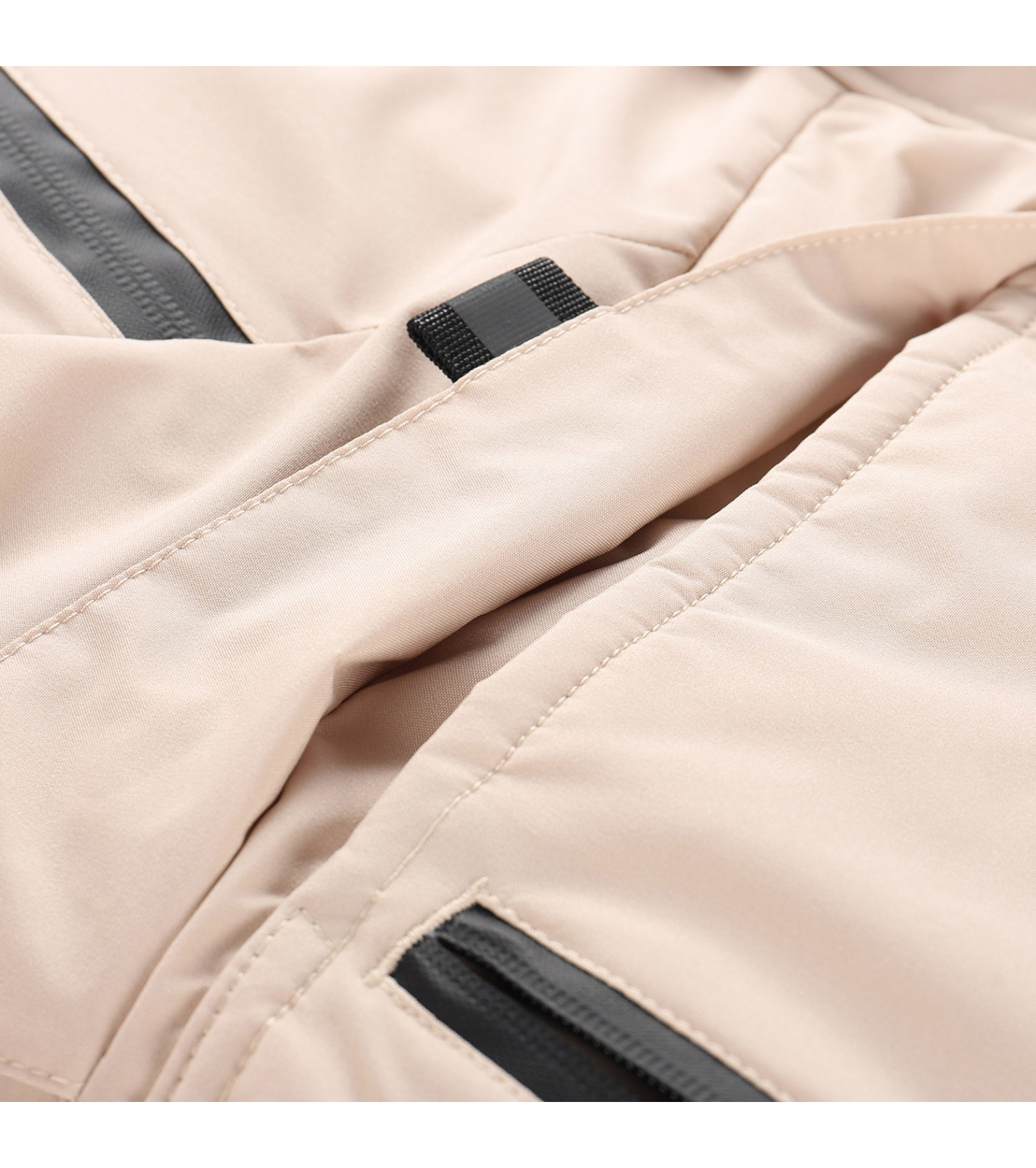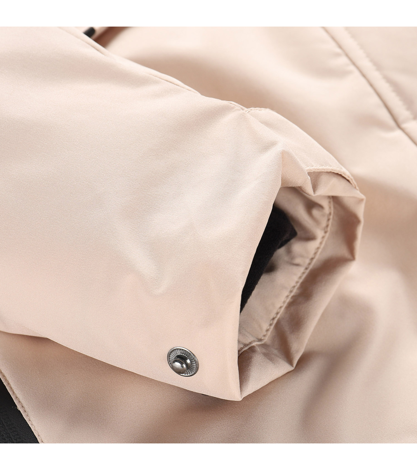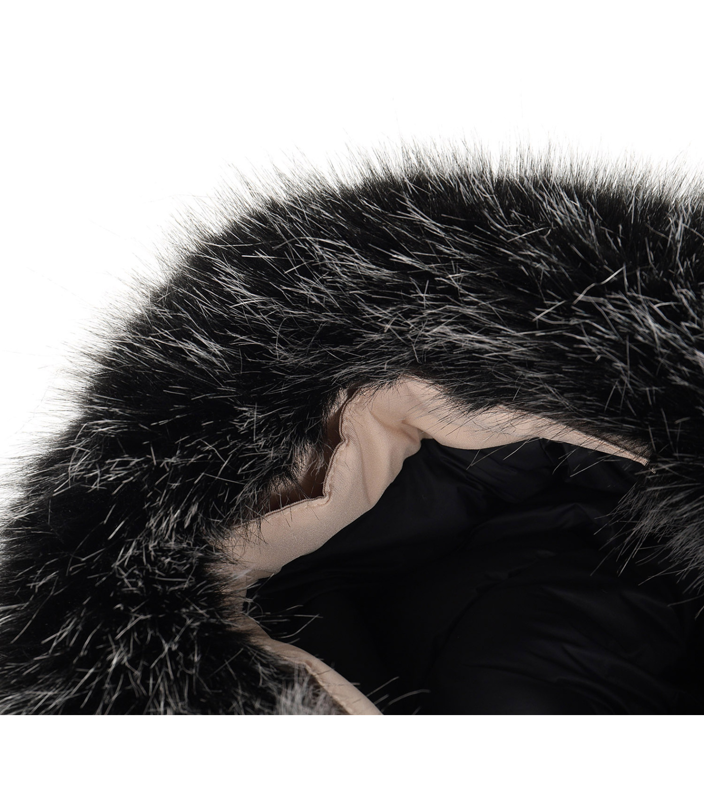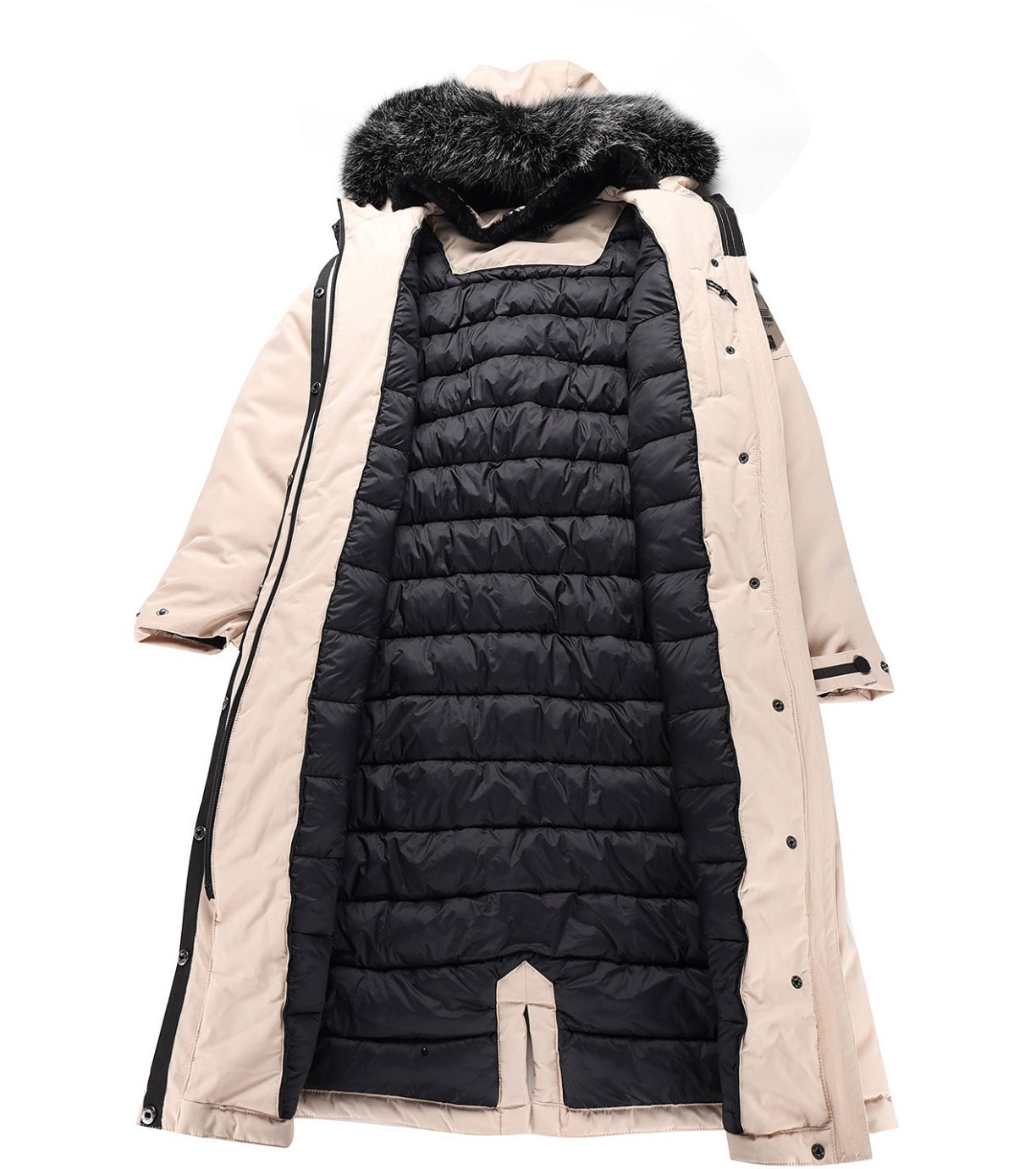 Nepremokavá, vetruodolná a zároveň pružná tkanina je doplnená silnou hrejivou výplňou a prešívanou podšívkou, ktoré zaručujú teplo aj pri veľmi nízkych teplotách. Polopriliehavý strih lichotí ženskej postave a pritom neobmedzuje v pohybe. Neodopínateľná kapucňa s možnosťou odobratia kožušinového lemu dodáva kabátu štýl av kombinácii s vnútorným golierom z mäkkého materiálu účinne chráni pred zimou.