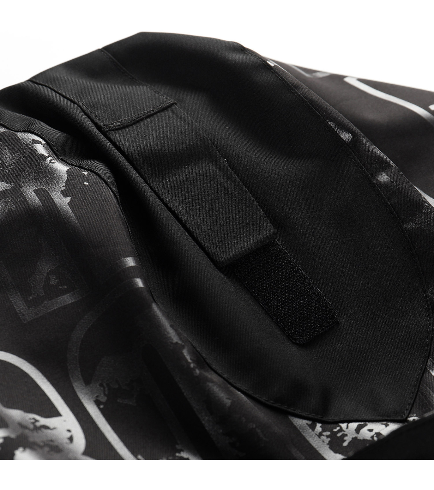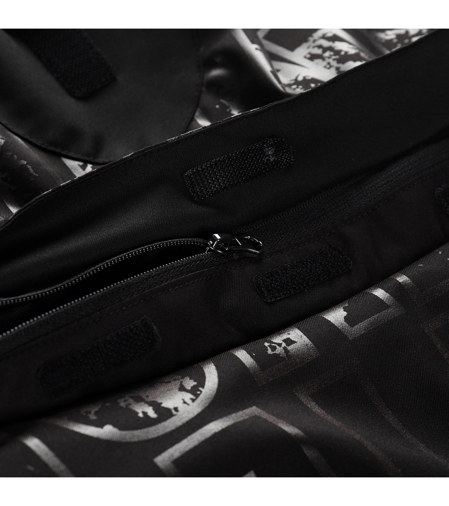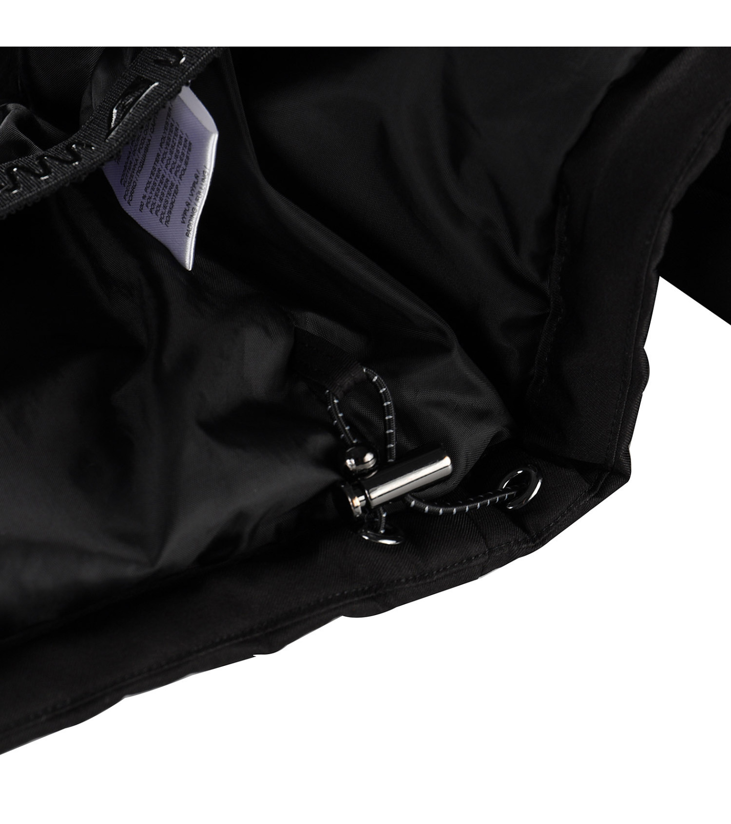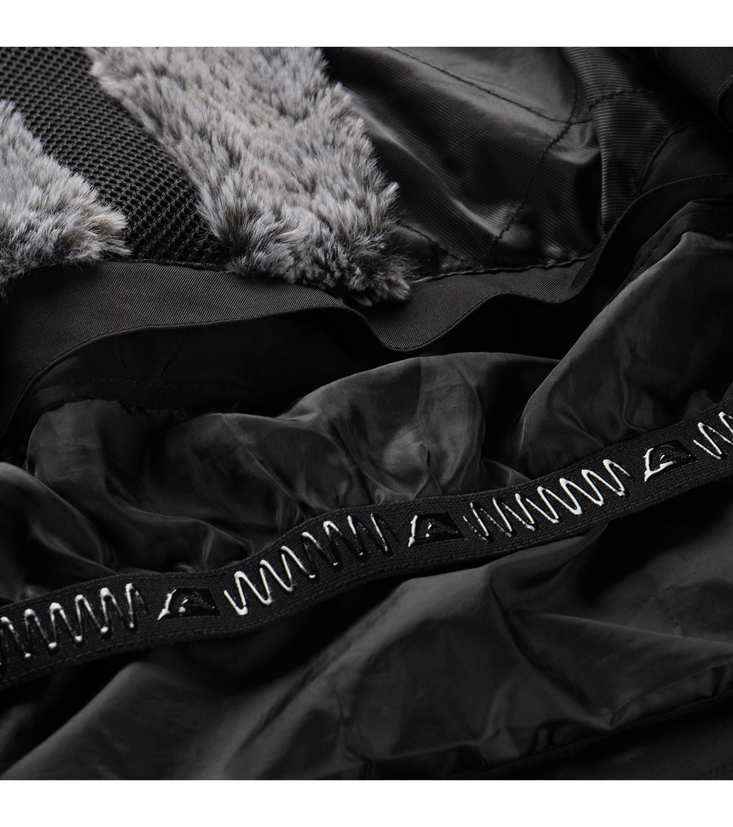 Odopínateľná snehová manžeta, ktorá zabraňuje prenikaniu snehu pod odev. V spodnej časti je našitá elastická protišmyková guma.