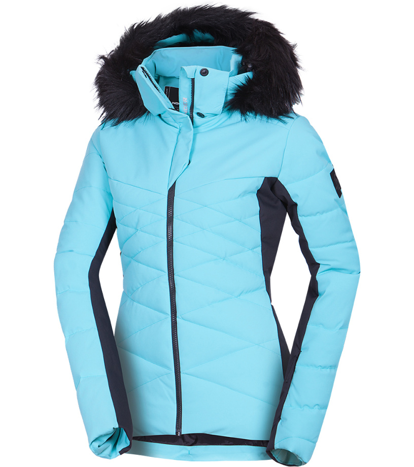 Dámska lyžiarska bunda dokonale pripravená na zimné počasie, sneženie aj vietor. Prináša trendový design spolu s pokročilými technickými funkciami a pohodlím. Je vyrobená z vysoko strečového 2-vrstvového materiálu s membránou a hodnotami 10 000 mm H₂O / 10 000 g/m²/24 h, vďaka čomu dobre odoláva vetru aj vode pri zachovaní výbornej priedušnosti. Materiál bol navyše ošetrený ekologickou vodoodpudivou WR úpravou (bez PFC). Tepelný komfort je navyše zaistený vďaka lézie proti prefúknutiu pod zipsom a snehovému pásu, ktorý chráni pred vniknutím snehu dovnútra bundy. Komfort pri nosení zvyšujú predtvarované rukávy a možnosť nastavenia obvodu rukávov na suchý zips s vnútornou vsadkou z lycry.