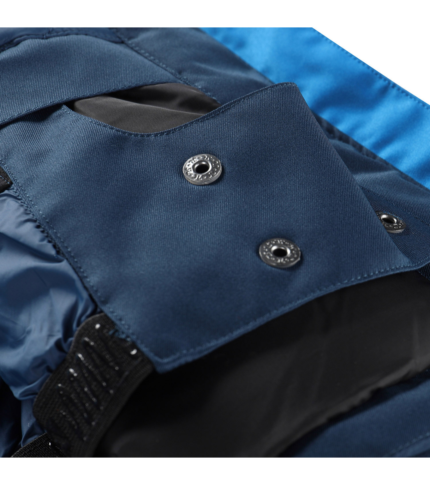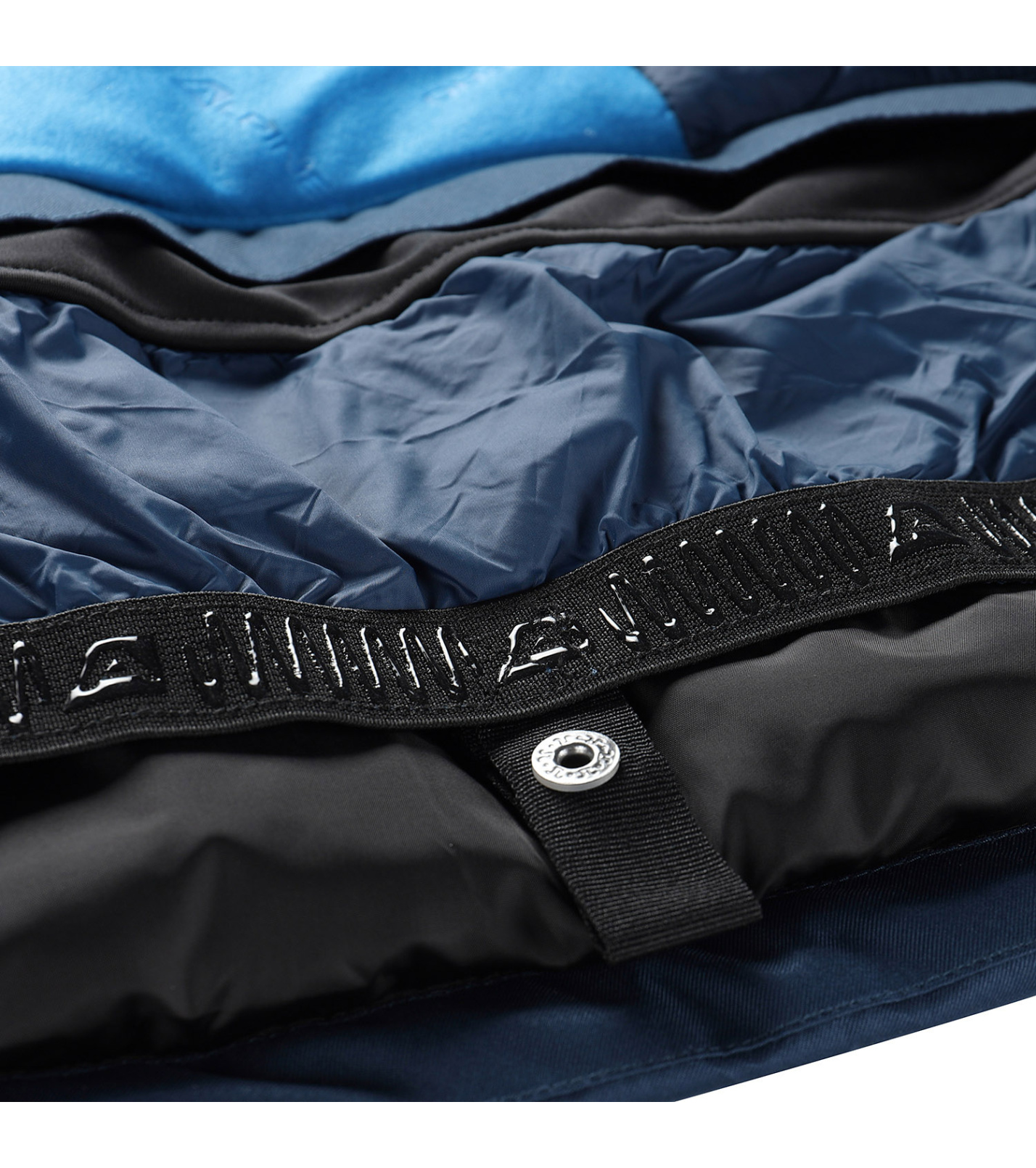 Odopínateľná snehová manžeta, ktorá zabraňuje prenikaniu snehu pod odev. V spodnej časti je našitá elastická protišmyková guma.
