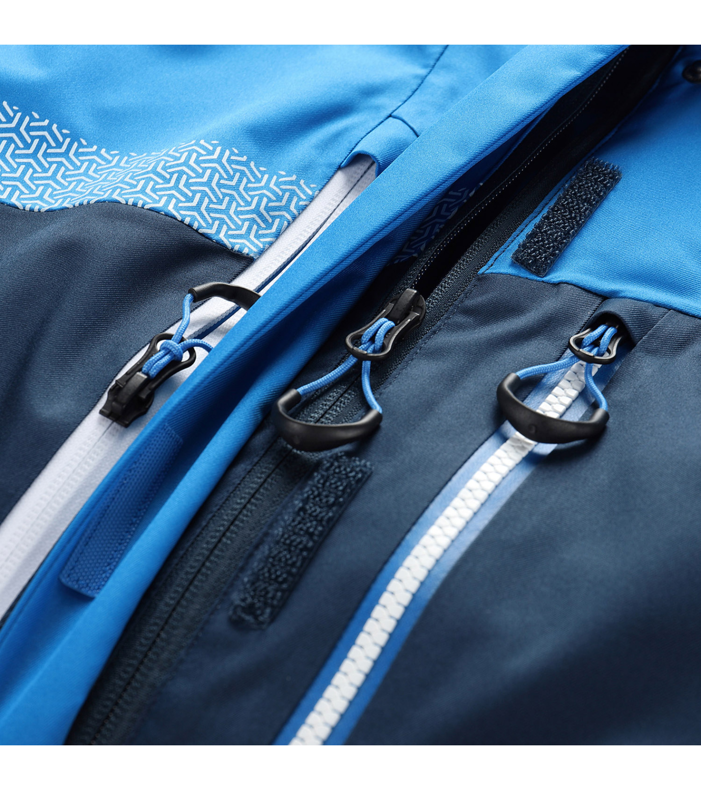 Rukávy majú sťahovanie na suchý zips a vo vnútri ukrývajú elastické manžety s otvorom na palec, ktoré chránia pred chladom. Bunda ponúka 7 praktických vreciek – náprsné s vodeodolným zipsom, vrecko na skipas na rukáve, dve predné na zips, vnútorné vrecko na zips a sieťované vrecko na lyžiarske okuliare.