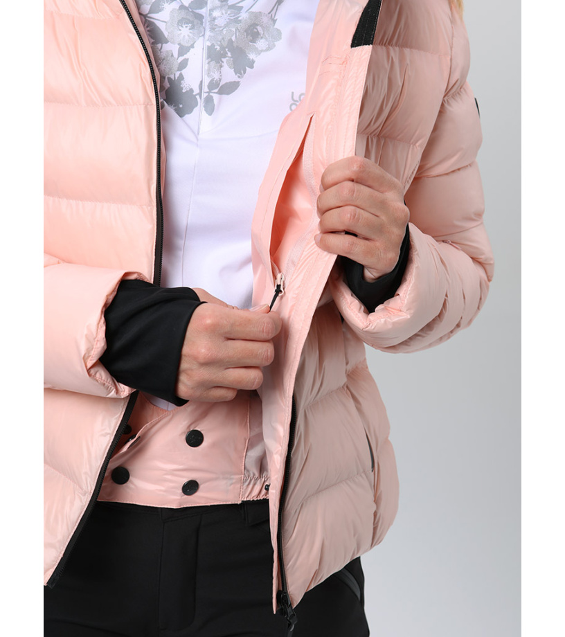 Dámska lyžiarska bunda - istota pohodlia na svahu aj v meste Táto dámska lyžiarska bunda v klasickom strihu je navrhnutá pre všetkých, ktorí chcú zostať v teple a suchu aj pri celodennom pobyte na horách. Vďaka zatepleniu z dutých vlákien POLYTHERM výborne hreje a pritom si zachováva ľahkosť a tvarovú stálosť. Vrchný materiál STORMEX s vodeodolnou membránou AQUA PRO a podlepené kritické švy zaisťujú spoľahlivú ochranu pred snehom, vetrom aj vlhkosťou. Hodnota vodného stĺpca 5 000 mm a rovnako vysoká priedušnosť robia z bundy skvelú voľbu pre aktívny pohyb aj v náročnejších podmienkach. Praktické odvetrávanie na zips pomáha regulovať telesnú teplotu. Pevná kapucňa ochráni pred nepriazňou počasia, vnútorné elastické rukávy s otvorom na palec zlepšujú tepelný komfort a zabraňujú prenikaniu snehu. Nastaviteľný spodný lem a vnútorný snehový pás zaisťujú, že teplo zostane tam, kde má. Bunde nechýba dostatok úložného priestoru – tri vonkajšie a dve vnútorné vrecká pohodlne pojmú všetko potrebné. Reverzný vodeodolný zips navyše zvyšuje odolnosť a zároveň prispieva k modernému vzhľadu.