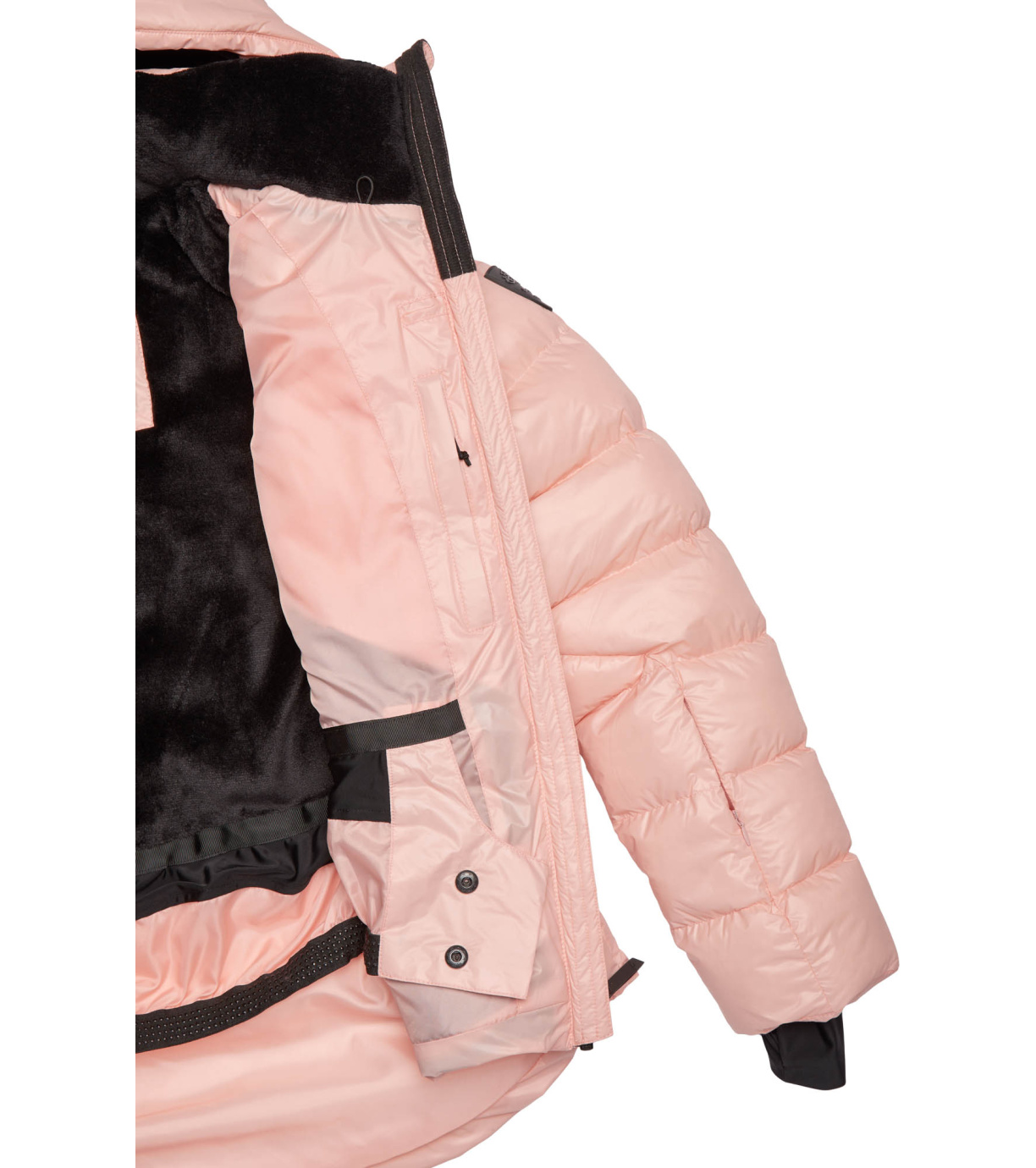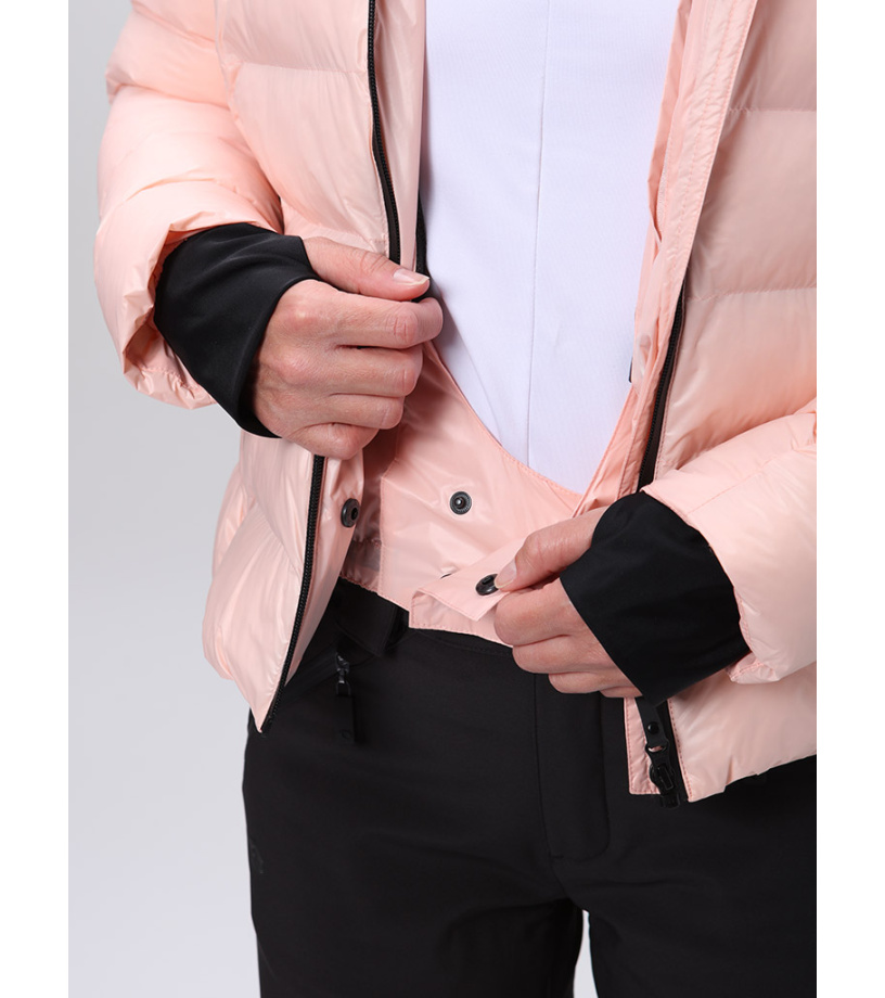 Všitá ochranná snehová manžeta, ktorá zabraňuje prenikaniu snehu pod odev. V spodnej časti je našitá elastická protišmyková guma.