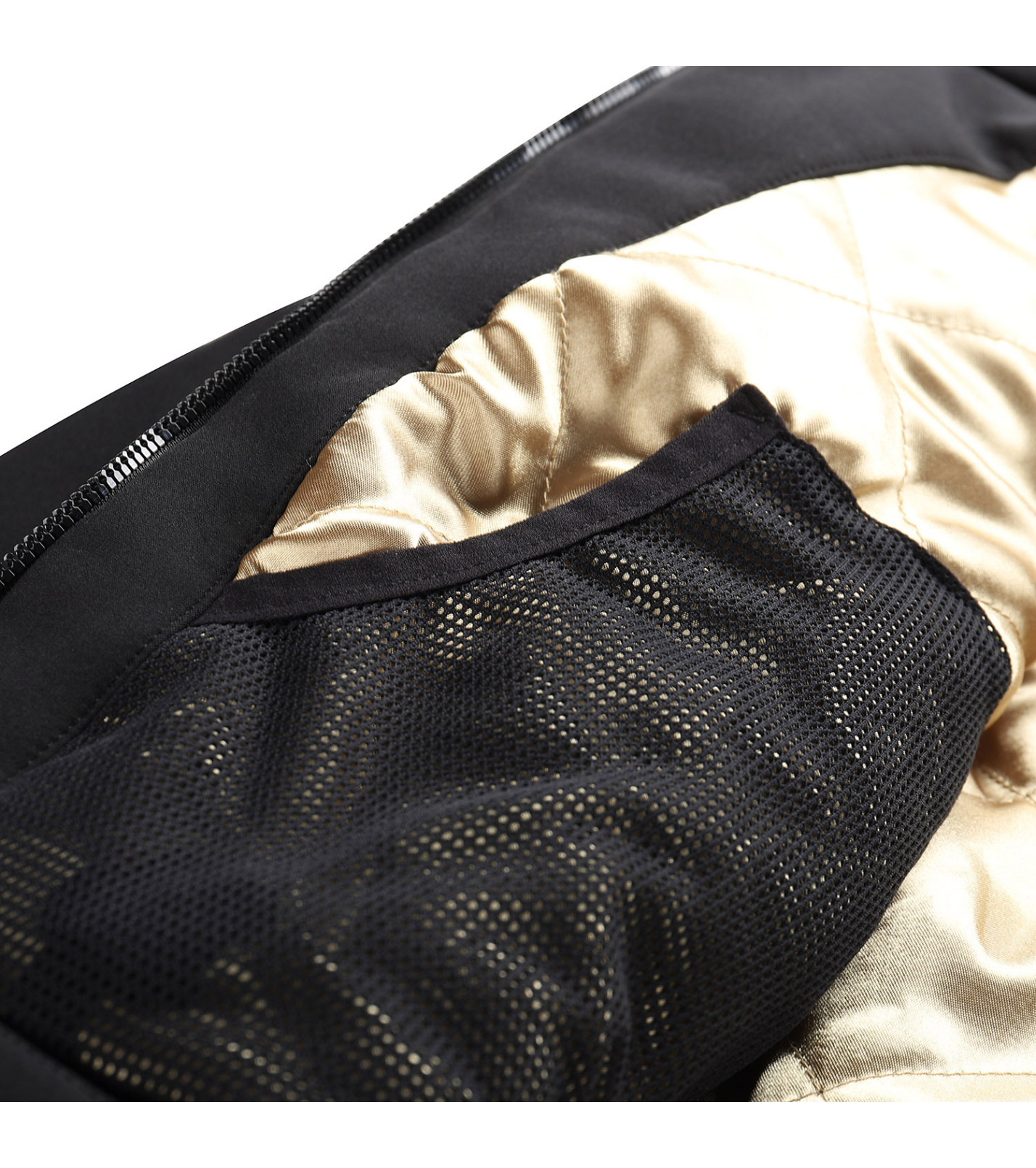 Sieťované vrecko na vnútornej strane bundy na uloženie lyžiarskych okuliarov.