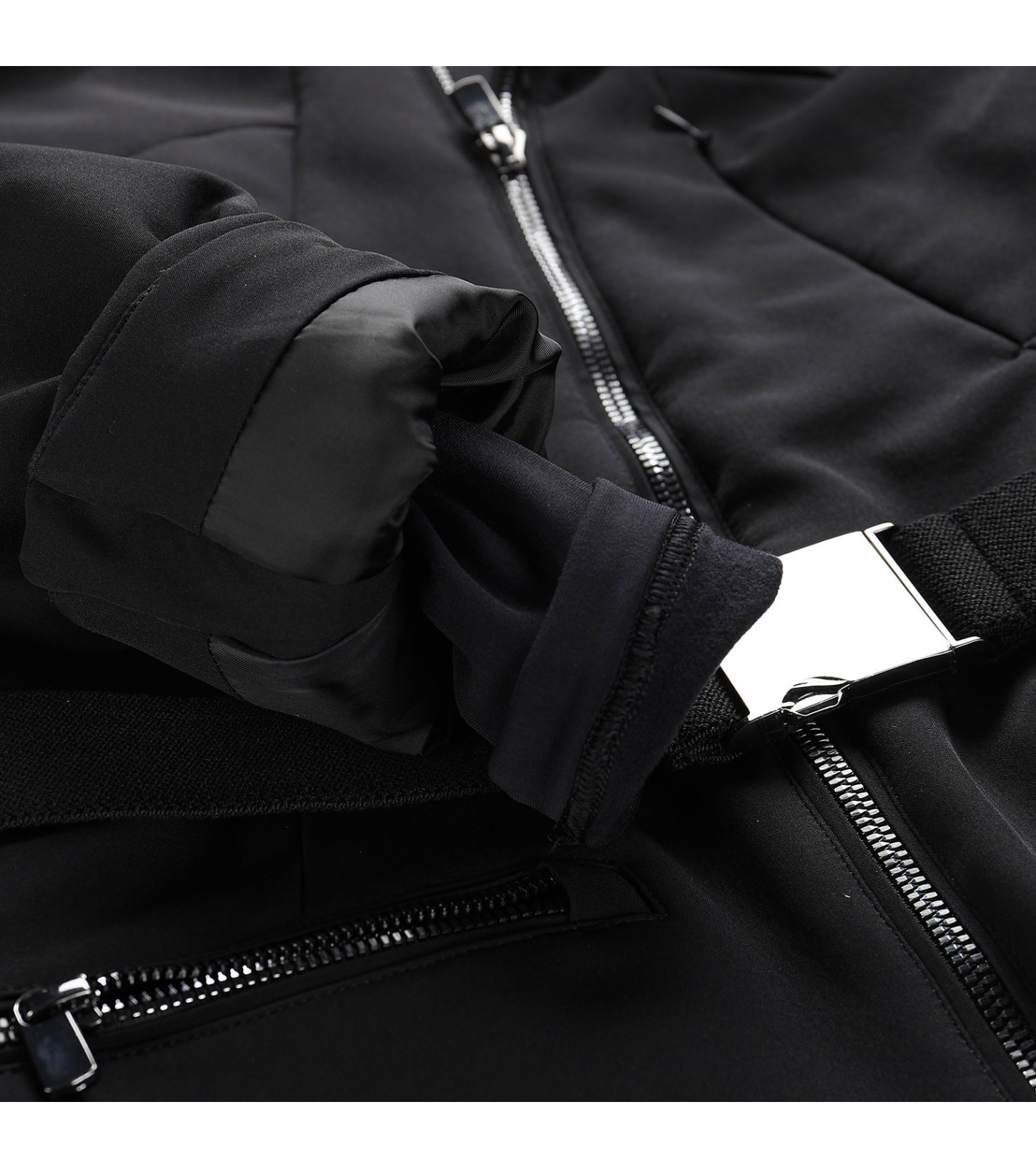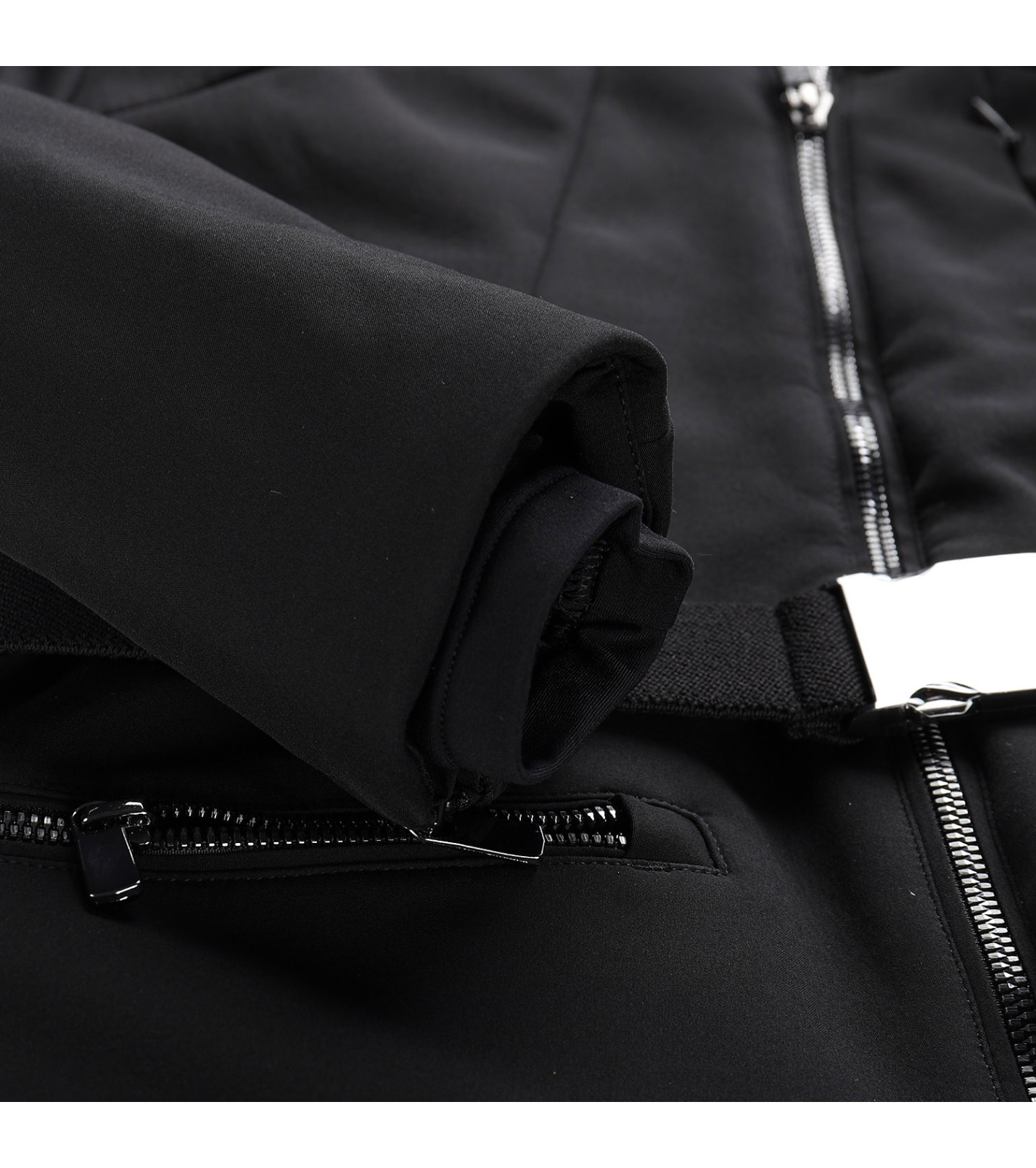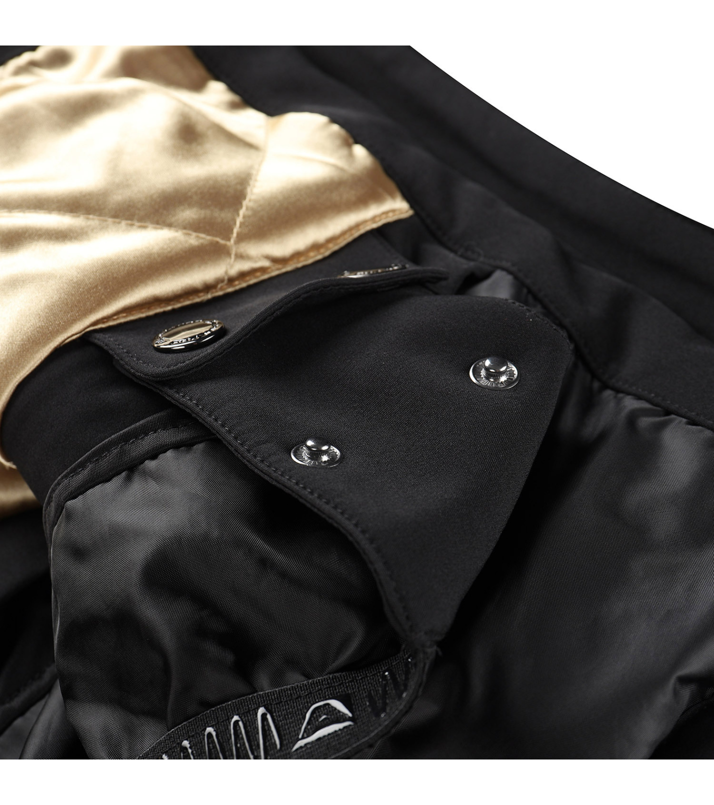 Odopínateľná snehová manžeta, ktorá zabraňuje prenikaniu snehu pod odev. V spodnej časti je našitá elastická protišmyková guma.