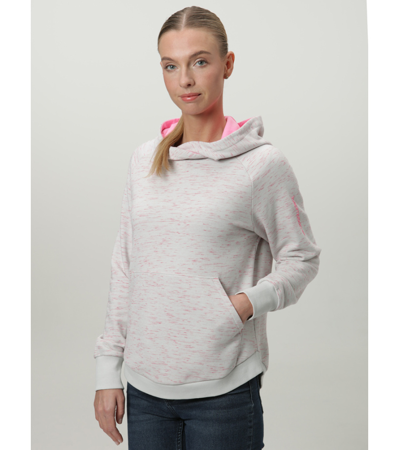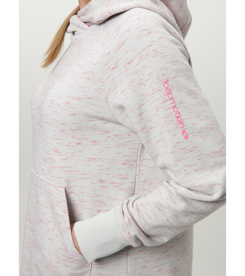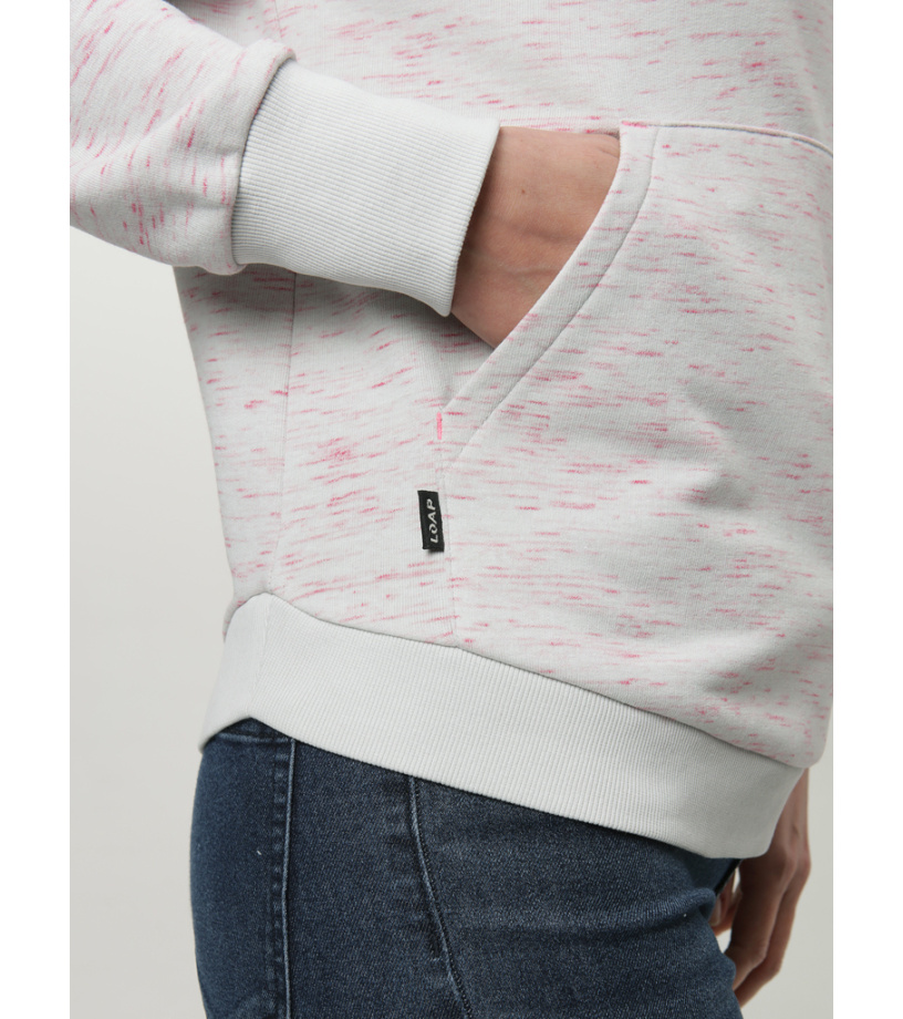 Dámska mikina LOAP ECLARA je navrhnutá pre ženy, ktoré hľadajú pohodlie a štýl v jednom. Komfortný strih zaisťuje voľnosť pohybu, zatiaľ čo pevná kapucňa a raglánové rukávy s nápletmi prispievajú k celodennému komfortu. Spodný okraj s nápletom zaručuje, že mikina dobre drží tvar a príjemne sedí. Moderný vzhľad podčiarkuje potlač na rukáve, ktorá dodáva mikine osobitý charakter. Dve vonkajšie vrecká sú praktickým prvkom na uloženie drobností alebo zahriatie rúk. Tento model je vhodný na každodenné nosenie aj voľnočasové aktivity a ľahko ho skombinujete s ďalším oblečením.
