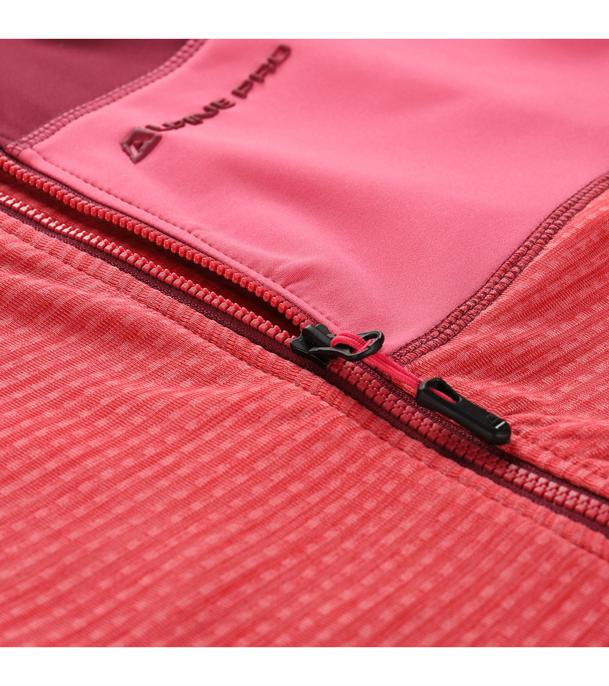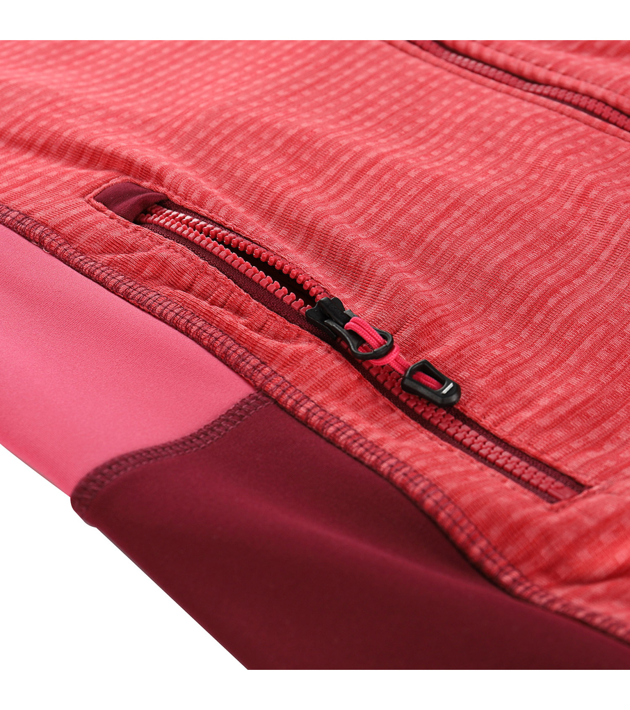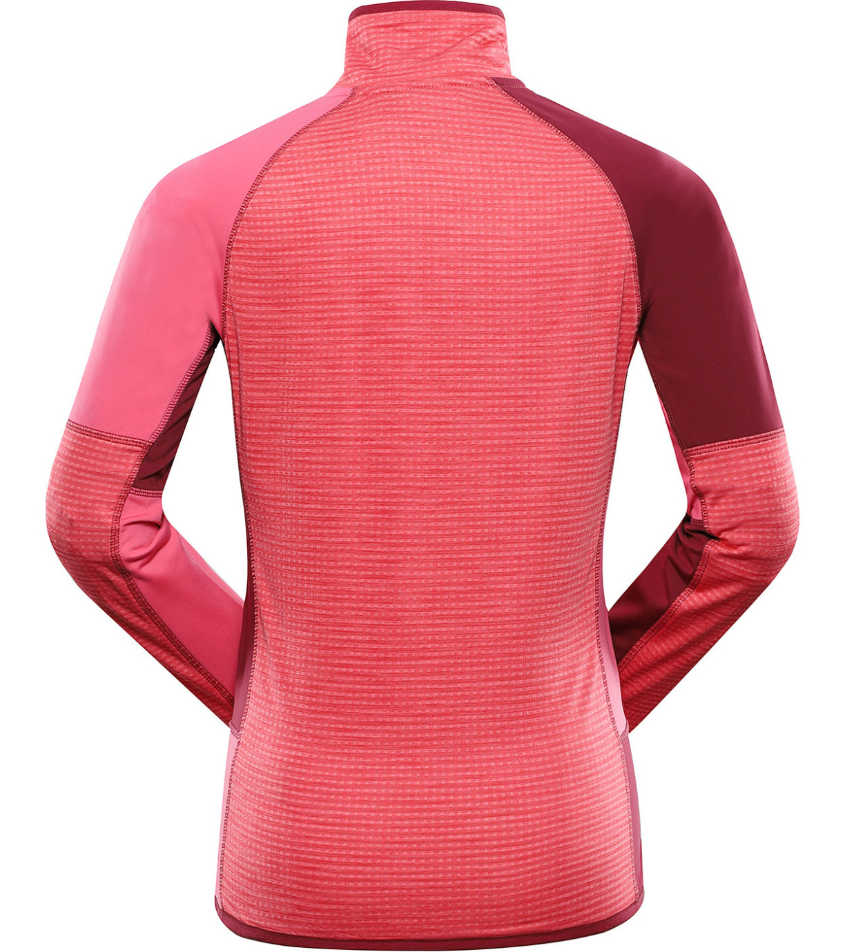 Dámska outdoorová mikina ONNECA 2 je vyrobená z ľahkého, pružného a rýchloschnúceho materiálu PROSTRETCH s úpravou COOL-DRY, ktorý sa prispôsobí telu pri športe aj outdoorových aktivitách Melírovaný funkčný materiál zaisťuje rýchly odvod potu a udržuje telo v optimálnej teplote. korčuľovanie, cyklistiku aj turistiku. Praktické prvky zahŕňajú dlhý zips, stojačik pri krku, dve vrecká na zips a dlhšie ťaháčky pre ľahkú manipuláciu.