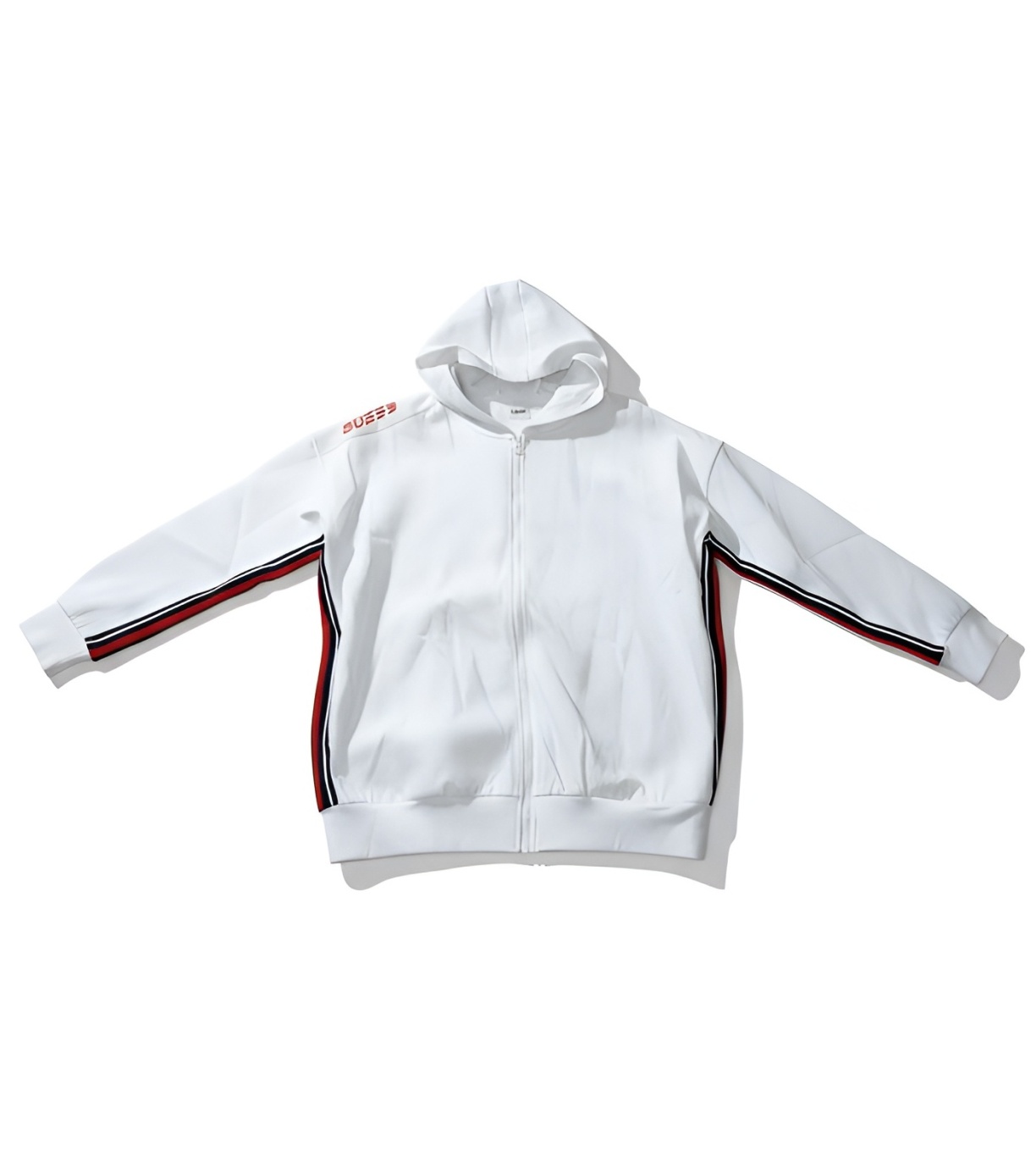 Dizajn oživujú kontrastné pruhy na rukávoch a bokoch, ktoré mikiny dodávajú štýlový a dynamický vzhľad. Praktické zapínanie na zips po celej dĺžke kapucne a bočné vrecká ponúkajú funkčnosť a pohodlie pri nosení. Materiál pôsobí mäkko a príjemne, ideálny na voľný čas, cestovanie alebo ľahká športová aktivita.