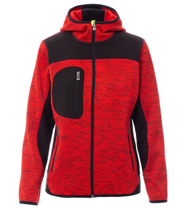 Technická mikina kombinovaná so softshellovými vsadkami v kontrastnej čiernej farbe. Dvojfarebné prevedenie s utesneným celoprepínacím zipsom SBS. Má tvarovanú kapucňu s dvojitým prešitím, tenký elastický lem na rukávoch a spodnom okraji. Praktické usporiadanie vreciek zahŕňa dve bočné vrecká na zips a jedno vrecko na hrudi.