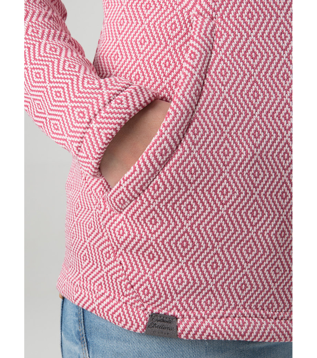 Dámsky funkčný sveter s kapucňou LOAP GAMALI so športovým vzhľadom môžete nosiť samostatne alebo ako druhú vrstvu pod funkčnú bundu. Sveter je klasického strihu a má pevnú kapucňu s tkaným plochým pásom. Rukávy a spodný okraj nemajú šnúrku na stiahnutie. Špirálový zips s kovovým efektom má na konci ochranu brady pred poranením pokožky. Na bokoch sú 2 otvorené vrecká. Tento sveter so strednou gramážou 260 g/m2 vás zahreje počas lyžovania, outdoorových aktivít, turistických výletov a voľného času od jesene do jari.