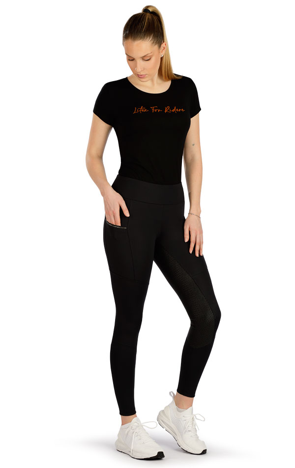 Jazdecké legíny so silikónovými gripmi po celom sede. V páse pružný a široký sťahujúci opasok. Praktické vrecká na nohaviciach s ozdobnými kamienkami. Vysoko kvalitný pružný materiál zaručuje vysoký komfort a pohodlie po celú dobu nosenia.