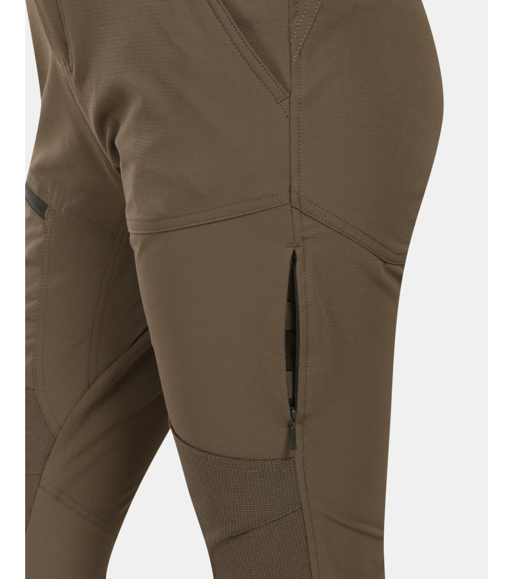 Kilpi VILLAIN-W z kategórie softshellových nohavíc na outdoor, turistiku alebo napríklad prácu na záhrade. Vyrobené z odolného tkaného softshellu s ripstop štruktúrou, ktorá zvyšuje pevnosť a odolnosť voči poškodeniu. Elasticita materiálu v kombinácii s tvarovaným strihom a krokovým klinom zaručuje neobmedzenú voľnosť pri pohybe. Nohavice majú zapínanie na kovové cvoky, elastický lem pása a pútka na opasok. Praktickou vychytávkou sú postranné ventilačné otvory, vďaka ktorým je možné zlepšiť odvetrávanie a váš tepelný komfort. Nohavice ponúkajú dve vrecká a jedno zipsové vrecko na stehne. Lemy nohavíc je možné prispôsobiť outdoorovej topánke pomocou sťahovania na kovové cvoky a háčika slúžiacemu na prichytenie o šnúrku topánky. Kritické miesta na kolenách a vnútorné lemy nohavíc sú zosilnené dvojitou vrstvou materiálu odolnou voči okopu a oderu. Ak máte radi dobrodružstvo v akejkoľvek podobe, neváhajte a doplňte šatník o našu novinku, nohavice Kilpi VILLAIN-W, v neutrálnej čiernej farbe.