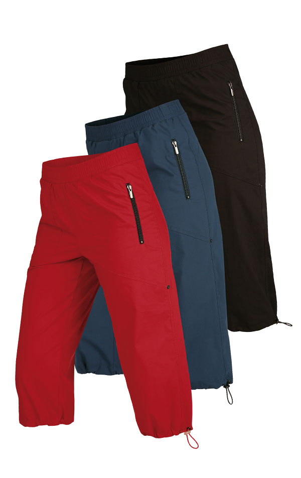Dámské kalhoty do pasu v 3/4 délce. V pase guma. Spodní okraj nohavic zakončen gumičkou a brzdičkou na stažení.