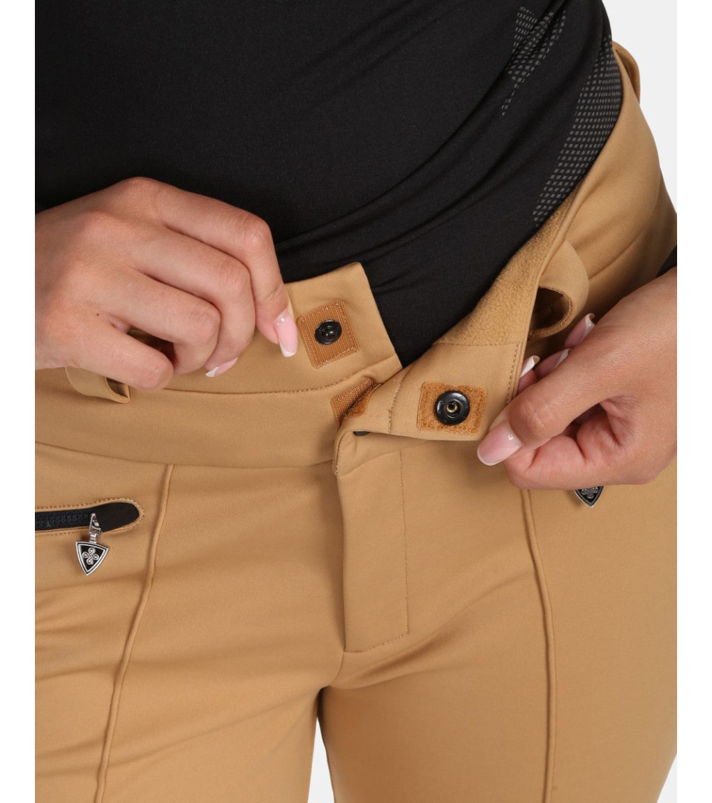 Zažite štýlovú eleganciu na zjazdovke s dámskymi softshellovými nohavicami Kilpi MAURA-W! Tieto nohavice nielenže vyzerajú skvele, ale taktiež poskytujú maximálne pohodlie a ochranu pri lyžovaní. Membránový elastický softshell, ktorý vás príjemne zahreje. Inovatívna gumová manžeta pod chodidlom zabraňuje vyhrňovaniu nohavíc pri aktivite na svahu. Moderná čierna alebo béžová farba nohavíc je zvýraznená lesklými zipsami, ktoré dodajú vášmu outfitu šmrnc a eleganciu. Užite si pohodlný a štýlový zážitok na lyžiach s týmito všestrannými nohavicami Kilpi MAURA-W!