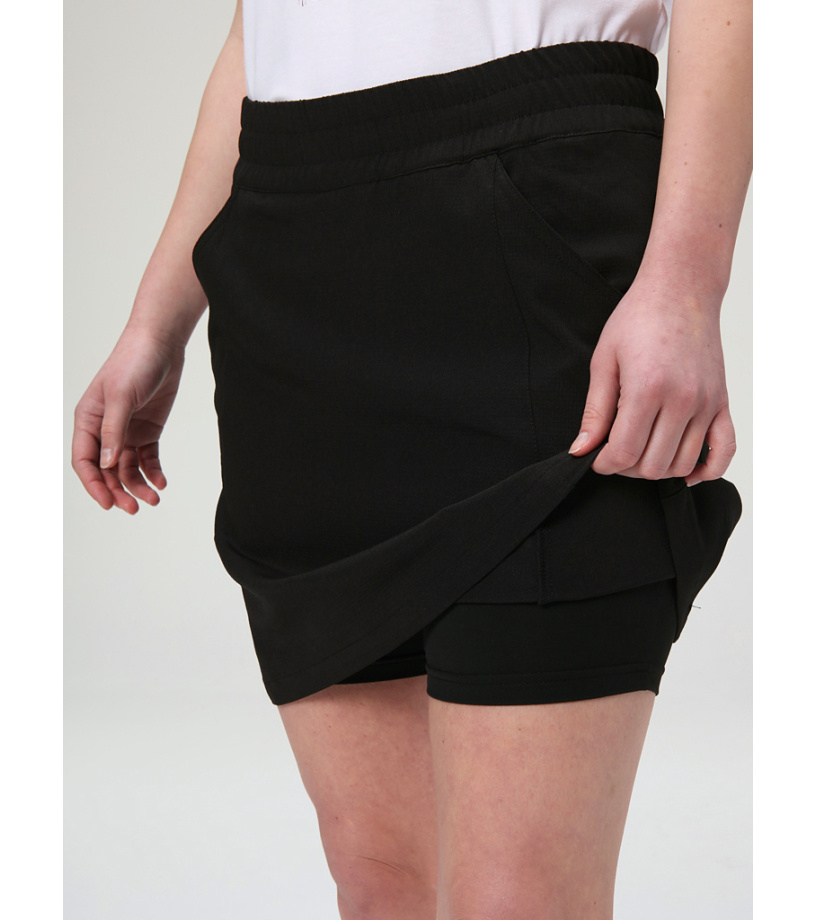 Dámska športová sukňa Loap UZUKA spája pohodlie a štýl a je ideálnym kúskom na vaše potulky prírodou a iné voľnočasové aktivity. Stredná gramáž predurčuje túto sukňu nielen ako súčasť vášho letného šatníka, ale aj na pohodlné nosenie od jari do jesene. Výhodou tejto sukne je ľahký, nenasiakavý materiál, ktorý spoľahlivo odvádza pot od tela a zároveň rýchlo schne pri nečakaných letných prehánkach. Vďaka elastanu je sukňa pružná a neobmedzuje rozsah pohybu. Klasický strih s elastickým pásom dobre sedí na tele alebo sa dá upraviť pomocou šnúrok. Veľmi praktickým prvkom sú vnútorné elastické šortky, ktoré chránia pred nepríjemným trením pokožky na vnútornej strane stehien. Ani vy sa nezaobídete bez vreciek v sukni? Žiadny problém, sukňa UZUKA spĺňa aj túto požiadavku. Pre bezpečnejší pohyb za šera je doplnená reflexnými prvkami. Perte na 30 °C so zmäkčovačom.