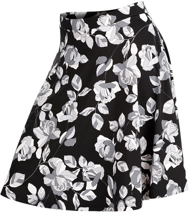 Dámska sukňa. Elegantná rozšírená sukňa po kolená s pružným pásom. Vhodná ako letná plavková sukňa. Dĺžka sukne cca 58 cm.