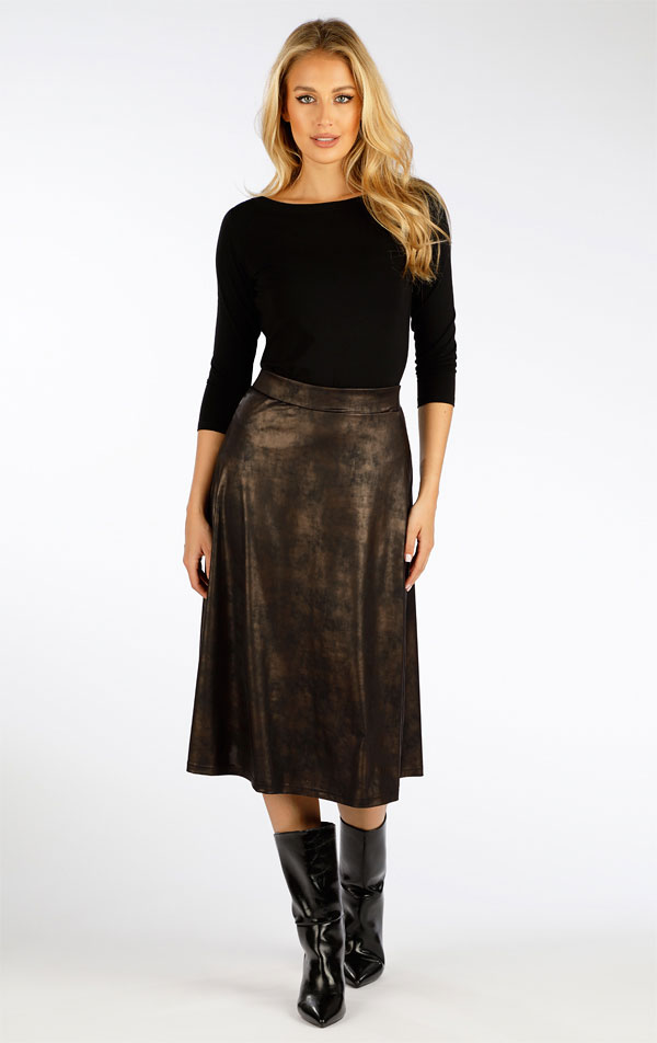 V páse pružný opasok s gumou. Materiál vzhľadu kože je pružný a poskytuje maximálny komfort pri nosení. Výborne kombinovateľný a praktický kúsok, ktorý skvele doladí Váš každodenný outfit. Dĺžka sukne cca 70 cm.