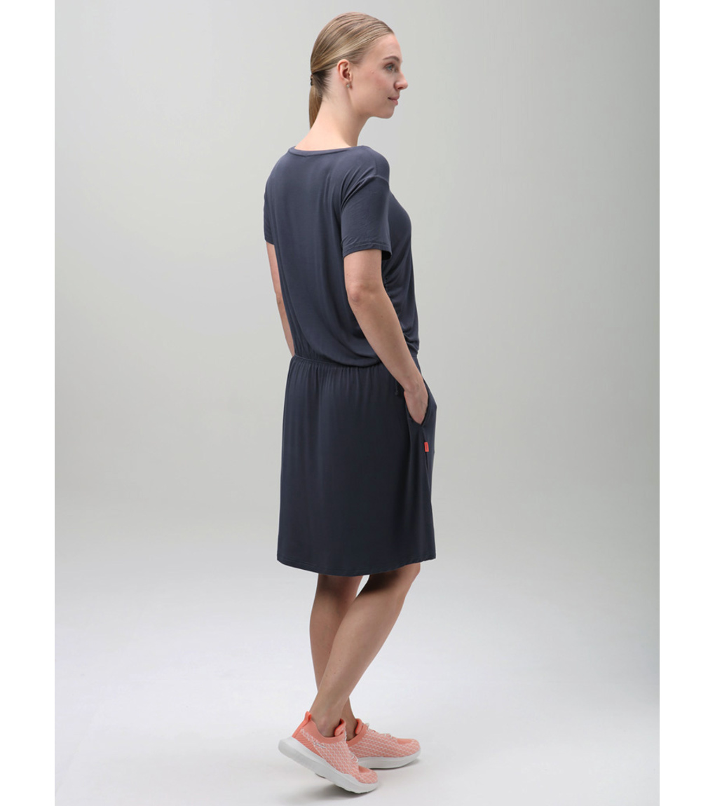 Oblečte sa do šiat Loap BREVORA a spoznáte, čo je to mimoriadne pohodlie. Sú ušité z bambusu, ktorému sa nie nadarmo hovorí materiál budúcnosti. Bambusové vlákno je totiž extrémne jemné, pritom odolné a ľahko sa udržuje. Vyniká priedušnosťou, hypoalergénnymi a antibakteriálnymi vlastnosťami a navrch aj schopnosťou termoregulácie. V lete príjemne chladí a skvele odvádza pot, v zime zahreje. Šaty sú ušité vo voľnejšom strihu s elastickým pásom so sťahovaním na šnúrku. Pôsobí elegantne a využijete ich na bežné nosenie, zároveň sa práve vďaka materiálu a dvom praktickým vreckám skvele hodí na voľnočasové aktivity.
