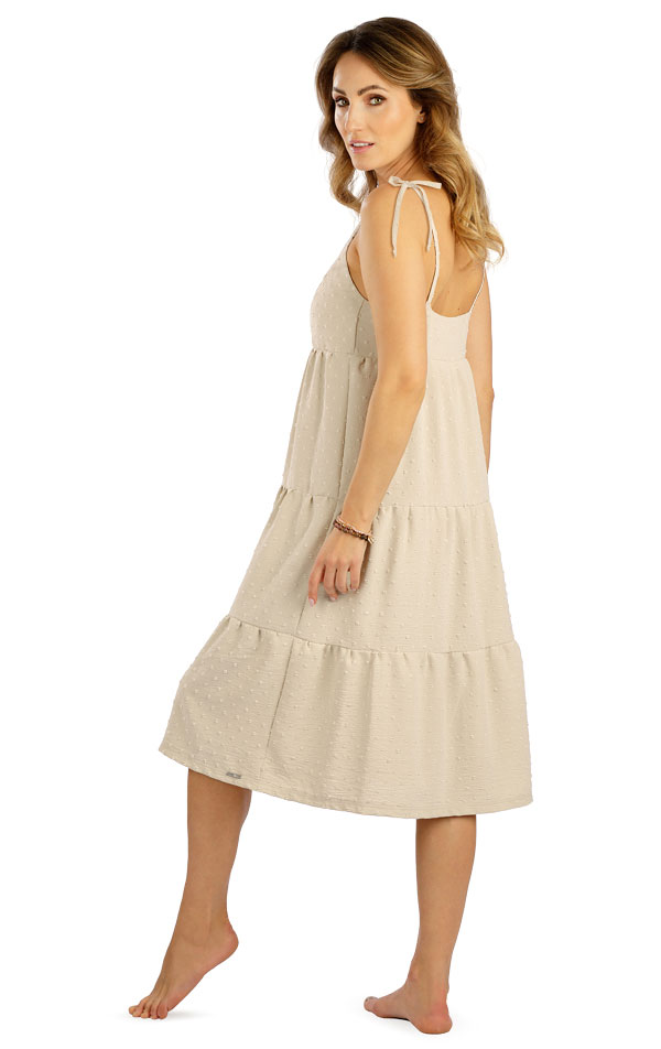 Dámské šaty na ramínka. Působivé romantické šaty volného střihu s kanýry a ramínky na zavazování. Vytkávaný lehký materiál zaručuje originalitu a maximální komfort při nošení. Velmi nápaditý kousek, který stylově osvěží Váš letní šatník. Délka šatů cca 97 cm.