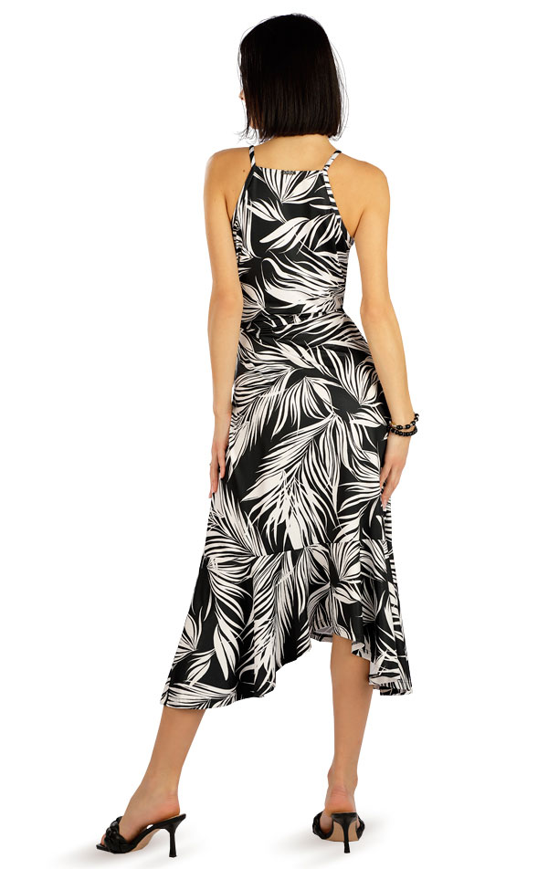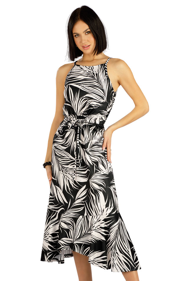 Dámské šaty na ramínka. Působivý střih dlouhých šatů. Tkanice v pase a odhalená ramena pro dokonalý vzhled. Spodní okraj s volánem. Nadčasový černobílý tisk. Materiálové složení zaručuje dokonalou splývavost, pružnost a maximálně příjemný pocit při nošení. Jistě oceníte nemačkavost a jednoduchou údržbu. Délka šatů cca 125 cm.