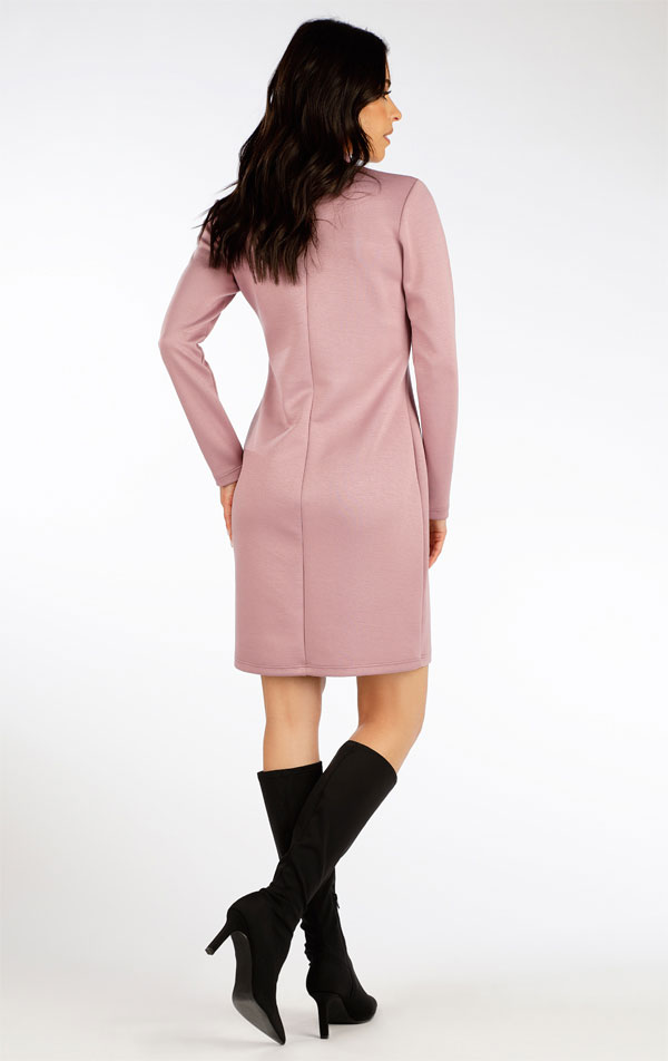 Jednoduchý strih bez vreciek a ozdobná aplikácia na prednom diele. Luxusný materiál s prímesou viskózy a elastanu je pružný, tvarovo stály a nekrčí sa. Dokonalé a praktické šaty, v ktorých vám bude príjemne po celý deň. Dĺžka šiat cca 85 cm.