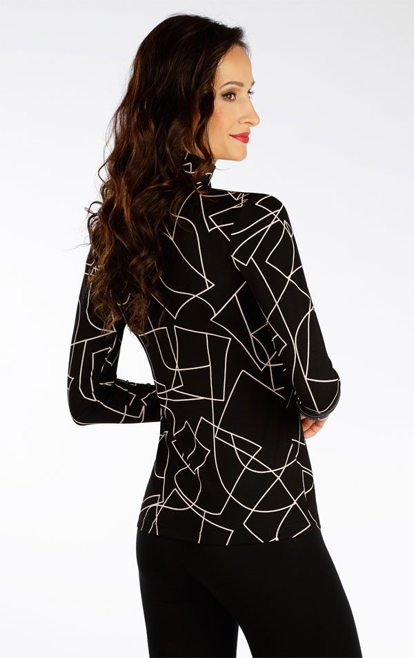 Priliehavý strih s vysokým stojačikom ku krku je vhodný nielen do saka. Viskózový materiál je pružný, tvarovo stály a veľmi príjemný na tele. Nadčasová béžovočierna tlač Vám dodá neodolateľný šarm.
