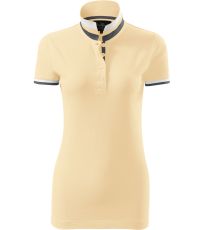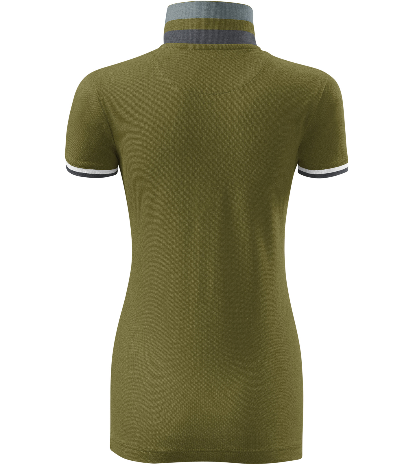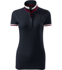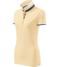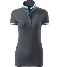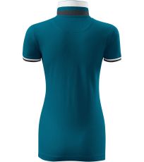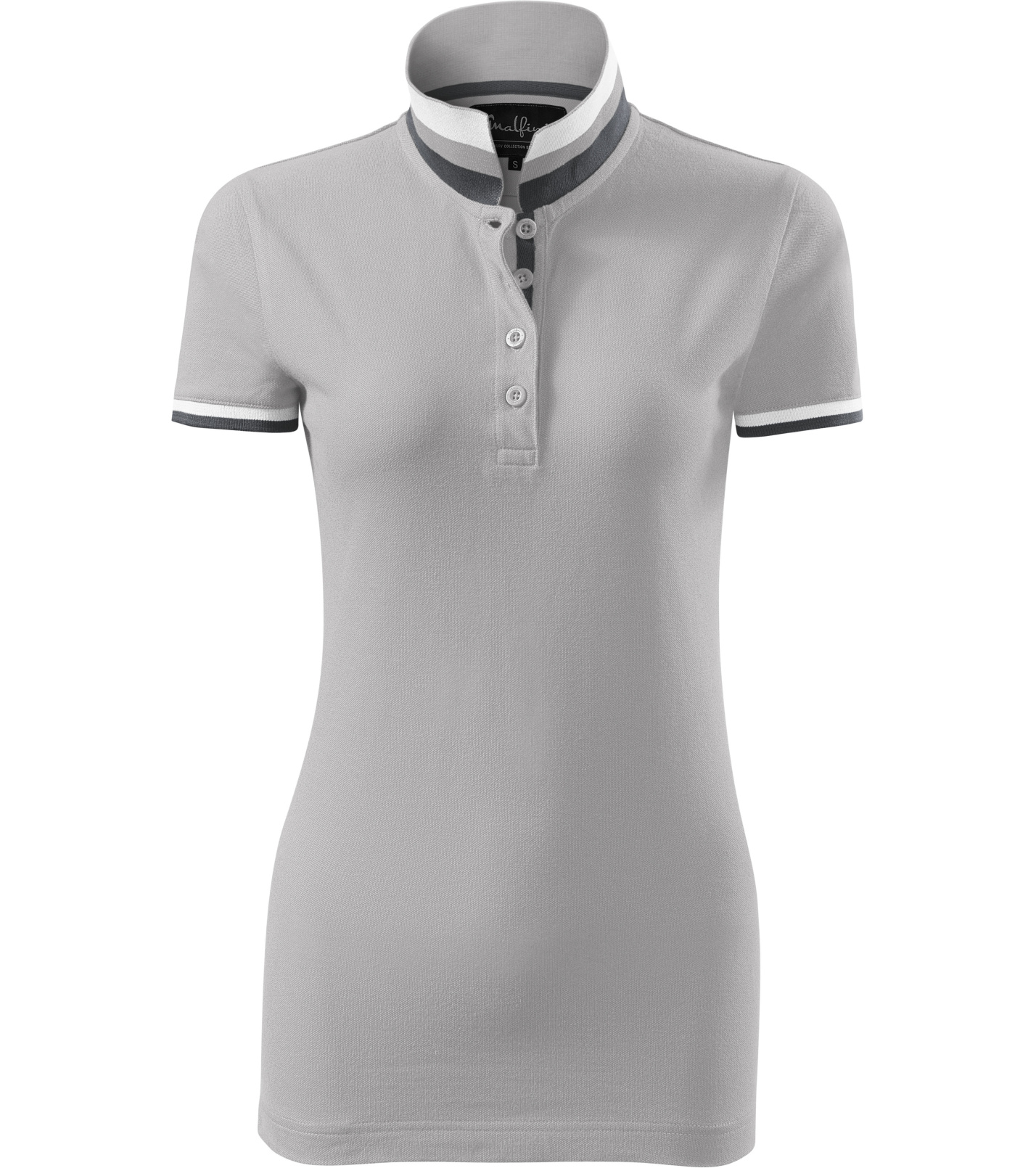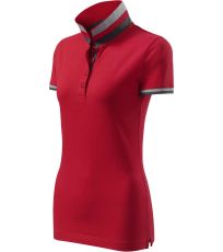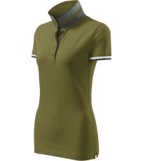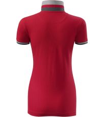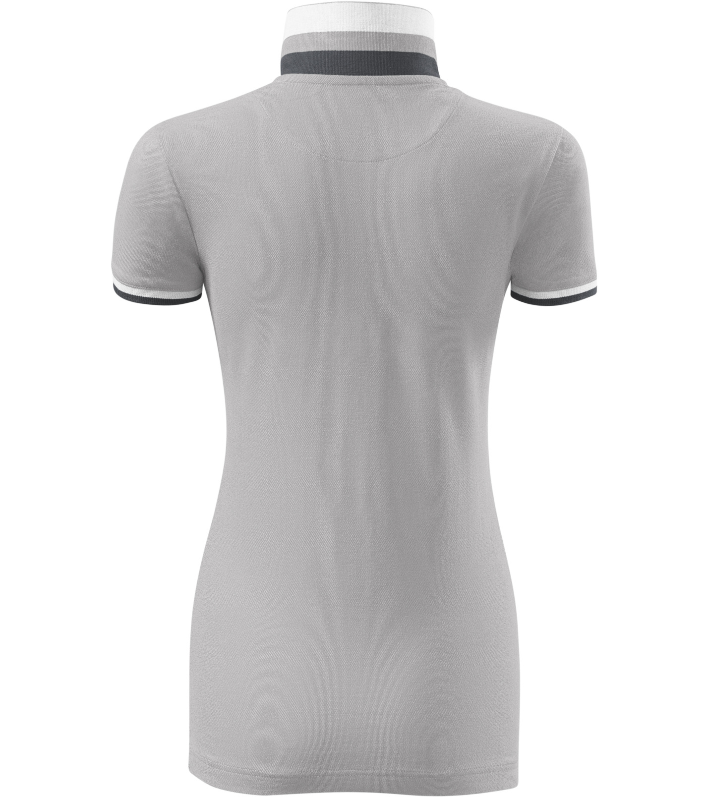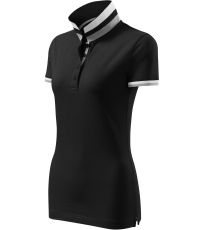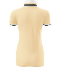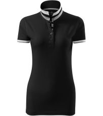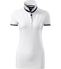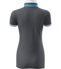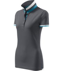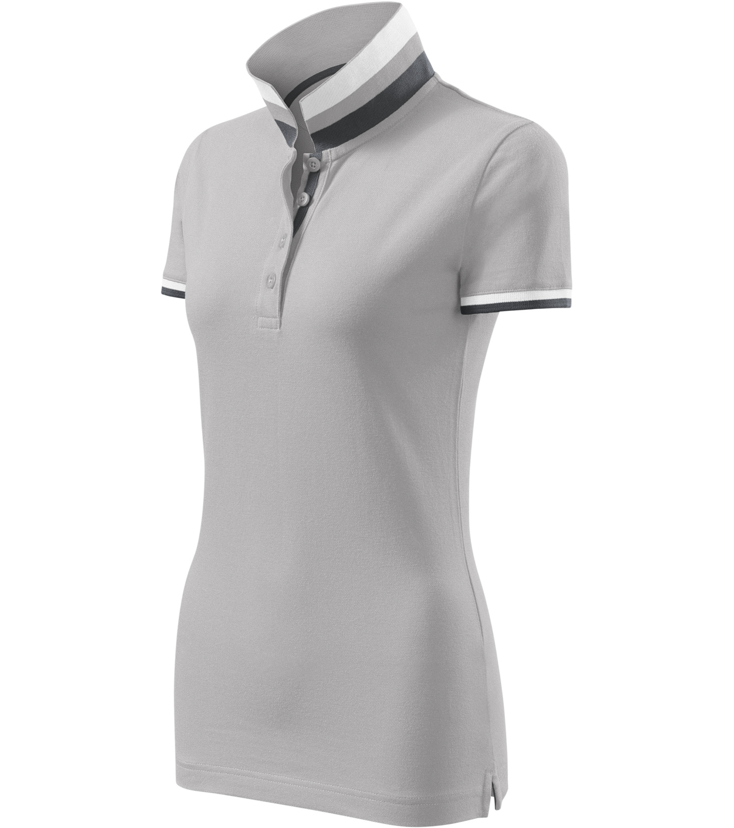 Dámske polo tričko mierne priliehavého strihu s bočnými švami vhodnými na vyšívanie a potlač má golier a lemy rukávov z rebrového úpletu 1:1, spodnú časť goliera a lemy rukávov s kontrastnými prúžkami, úzky lem so 4 gombíkmi vo farbe materiálu, rozparky v bočných švoch a spodnom leme s kontrastnou páskou, vnútorný výstrih zapečatený kontrastnou páskou a spevnenie ramenných švov páskou.