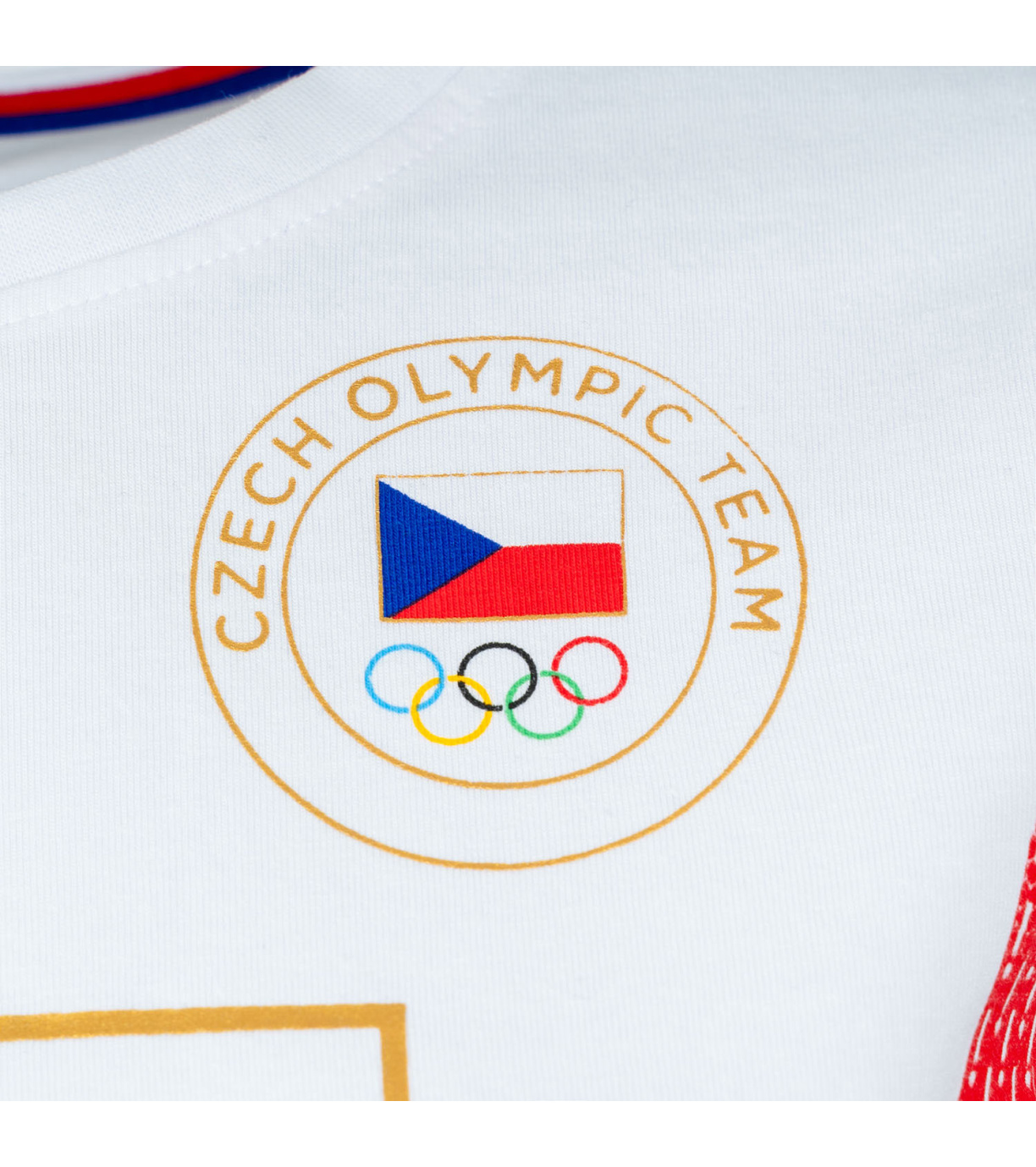 Štýlové dámske tričko z kolekcie pre Olympijské hry vo Francúzsku 2024 je ideálnou voľbou pre všetkých fanúšikov českého tímu. Moderný dizajn kombinuje čistú bielu farbu s výraznými prvkami v národných farbách. Dominantou prednej časti je česká vlajka a nápis CZE, ktoré hrdo reprezentujú Českú republiku. Nechýba ani logo Czech Olympic Team a značka Alpine Pro.