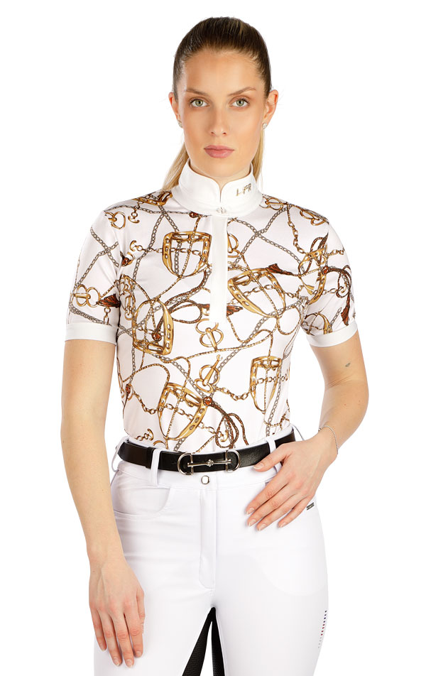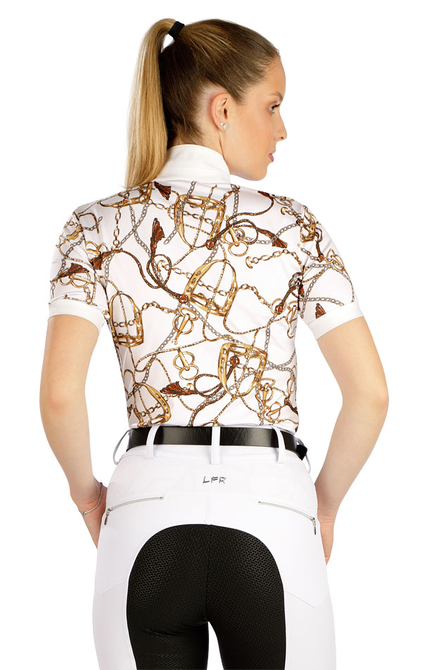 Dámske závodné tričko priliehavého strihu. Stojačik je ozdobený gombíkom "Crystals from Swarovski". Léga so skrytým zapínaním na gombíky. Vysoko kvalitný funkčný materiál zaručuje vysoký komfort pri celodennom nosení. Materiál je veľmi ľahký, priedušný, pružný a rýchloschnúci. Štýlová potlač robí toto tričko originálne.