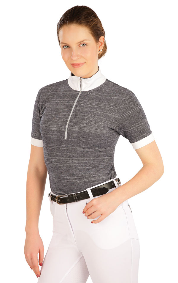 Triko dámské s krátkým rukávem. Rukáv s manžetou. Krátký zip. Ozdobné kamínky.