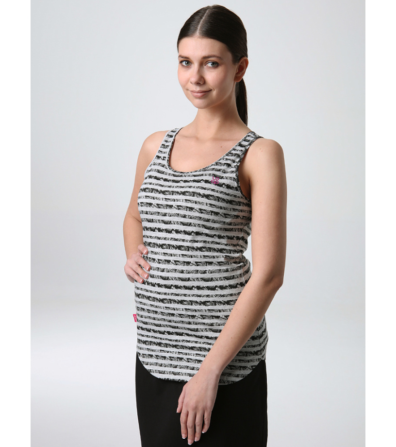 Pruhované tielko ABTILKA je vyrobené zo strednej gramáže 190 g/m2 veľmi príjemnej bavlny (95 %) a elastanu (5 %). Vďaka tomu je pružnejšie, lepšie sedí a menej sa krčí ako klasické tielko zo 100 % bavlny. Má klasický strih. Má okrúhly výstrih, široké ramienka, spodný lem bez šnúrky a mierne predĺžený zadný diel s malým rozparkom na bokoch. Zdobí ho pruhovaná celoplošná potlač, ktorá je príjemná na dotyk. Užijete ho od jari do jesene, najmä v lete. Perte na 30 °C so zmäkčovačom.