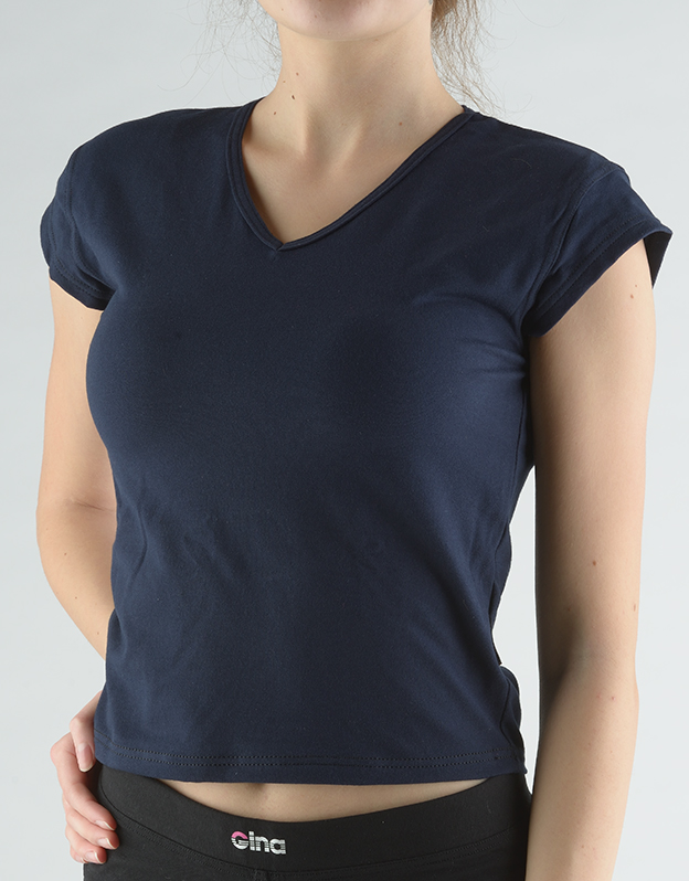 Dámske športové tričko s krátkym rukávom do pása, šité na mieru. Výstrih do V. Tričko je jednofarebné.