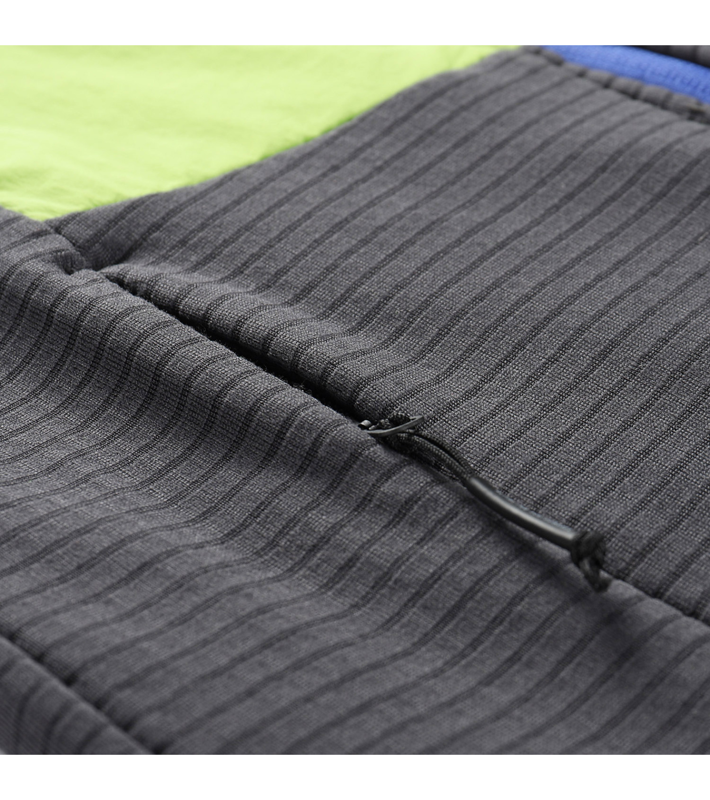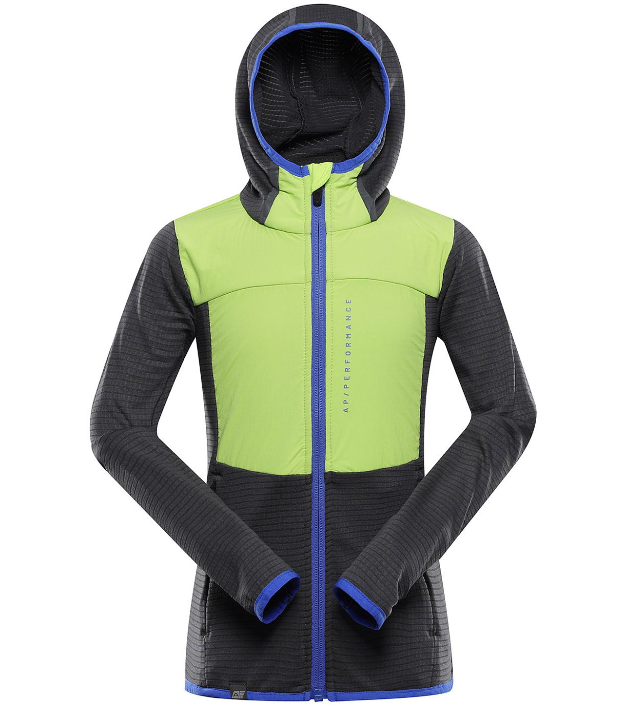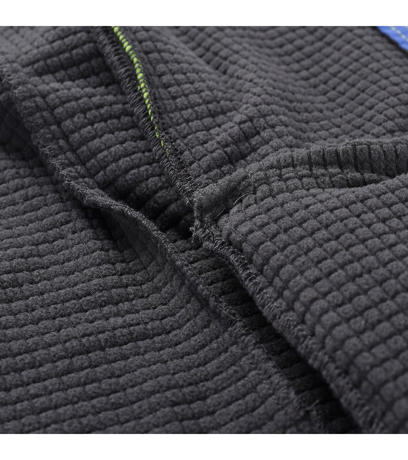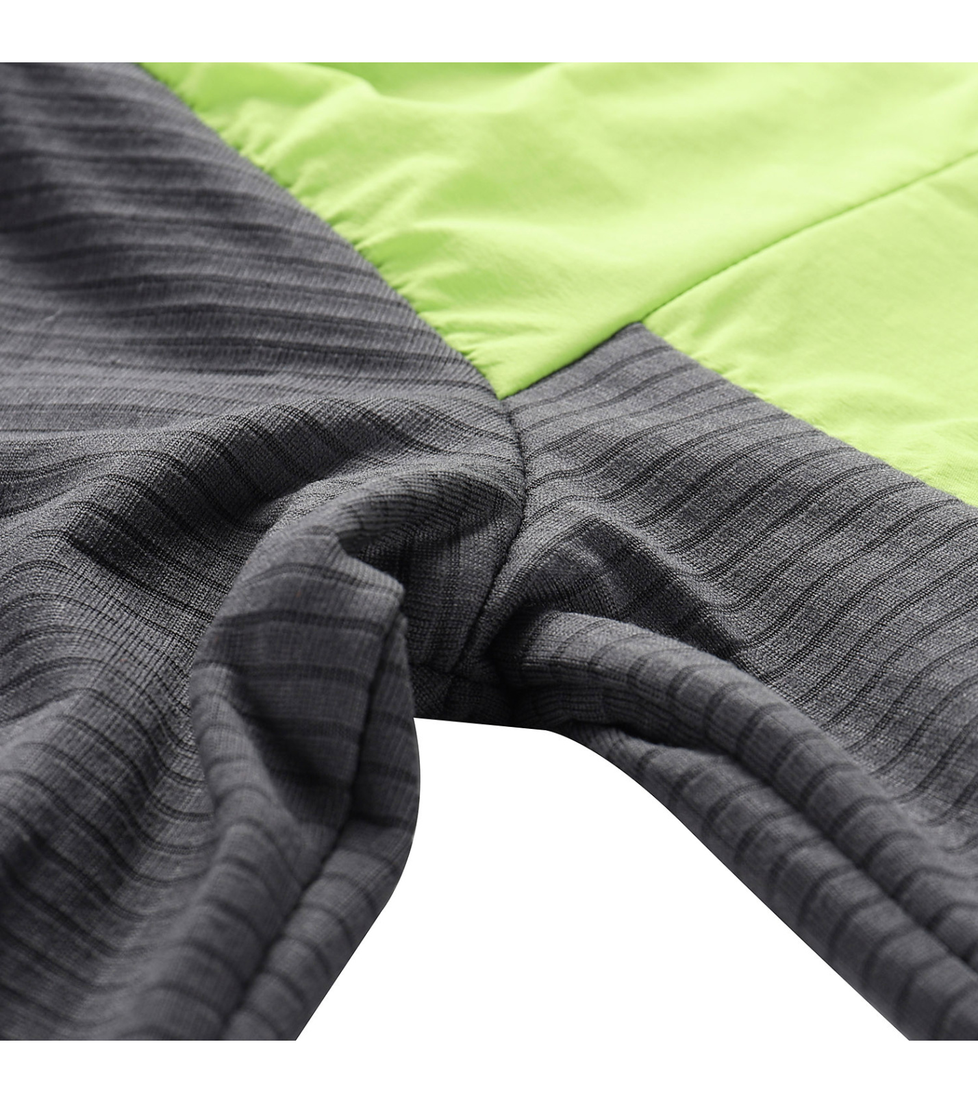 Detská mikina je vyrobená z kvalitného funkčného materiálu, ktorý kombinuje 50% recyklovaného polyesteru a 50% polyesteru COOLMAX. Vďaka tomu je tkanina pružná, príjemne hrejivá a zároveň zaisťuje optimálny odvod vlhkosti. Na vybraných častiach je použitý kontrastný vodoodpudivý materiál, ktorý chráni pred ľahkou vlhkosťou a zvyšuje odolnosť mikiny.