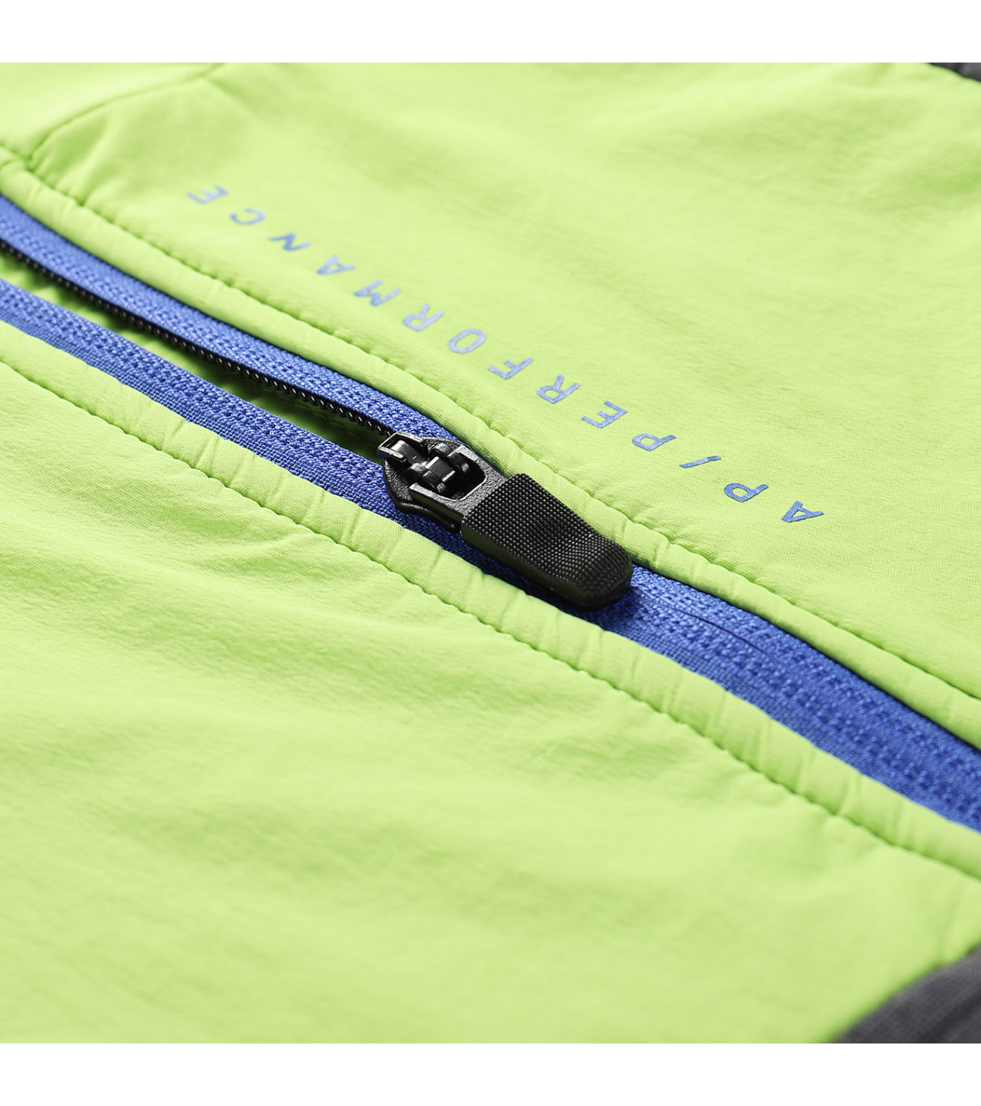 Praktické prevedenie zahŕňa dlhý zips pre ľahké obliekanie aj vyzliekanie a celkom tri vrecká, z ktorých predné je opatrené zipsom pre bezpečné uloženie drobností. Funkčnosť dopĺňajú reflexné potlače umiestnené na prednom diele a rukáve, ktoré zvyšujú viditeľnosť a bezpečnosť dieťaťa. Prednú časť zdobí aj decentná nášivka. Pre komfortné používanie majú všetky zipsy dlhšie ťahačky, ktoré umožňujú ľahkú manipuláciu aj v rukaviciach.