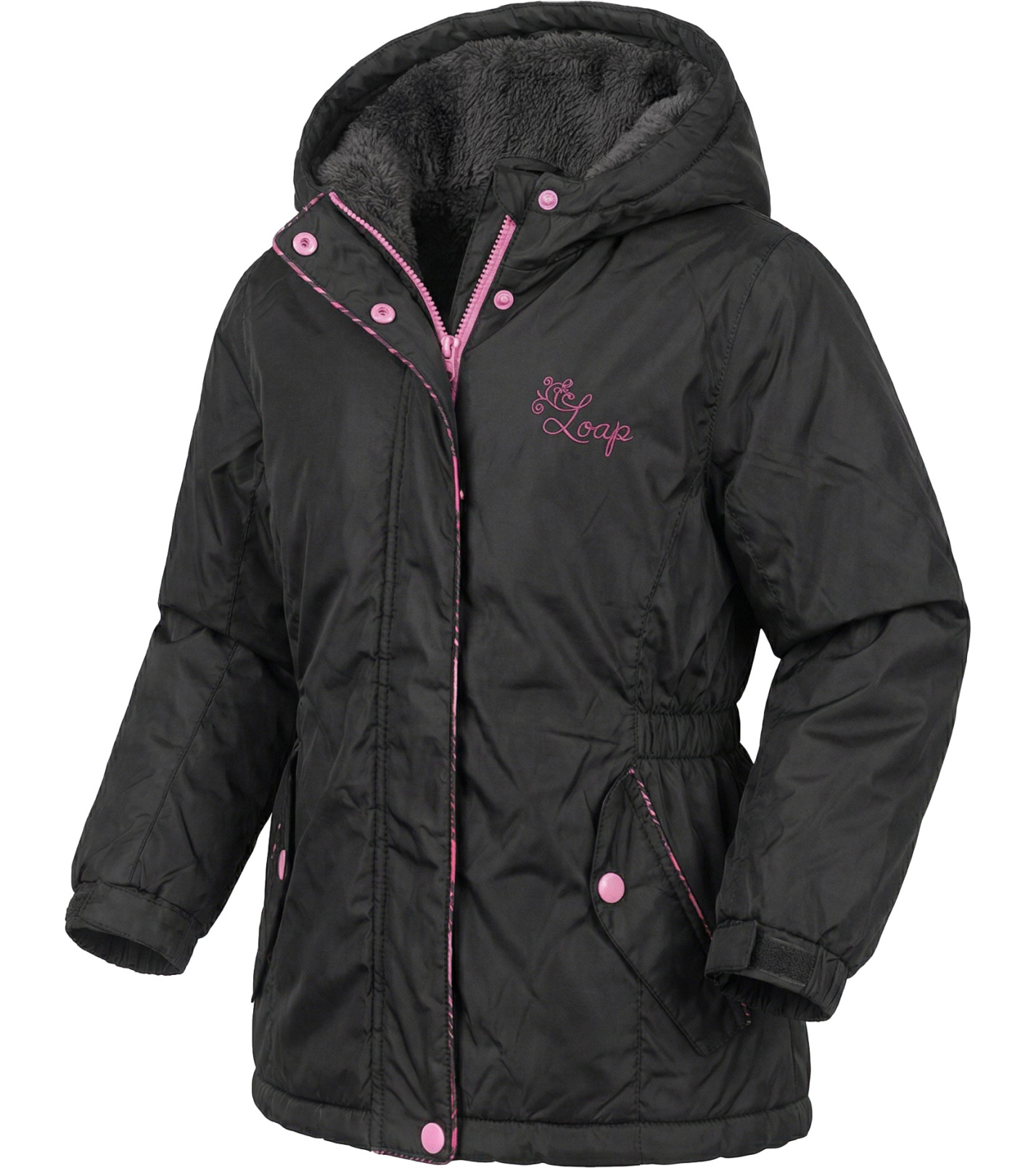 Detský zimný kabátik v roztomilom strihu s nariasením v páse krásne padne a zároveň poskytne maximálne pohodlie počas chladných dní. Vnútorná časť je podšitá príjemným hrejivým kožúškom, ktorý zaistí tepelný komfort pri každodennom nosení. Pevná kapucňa chráni pred vetrom aj nepriaznivým počasím.