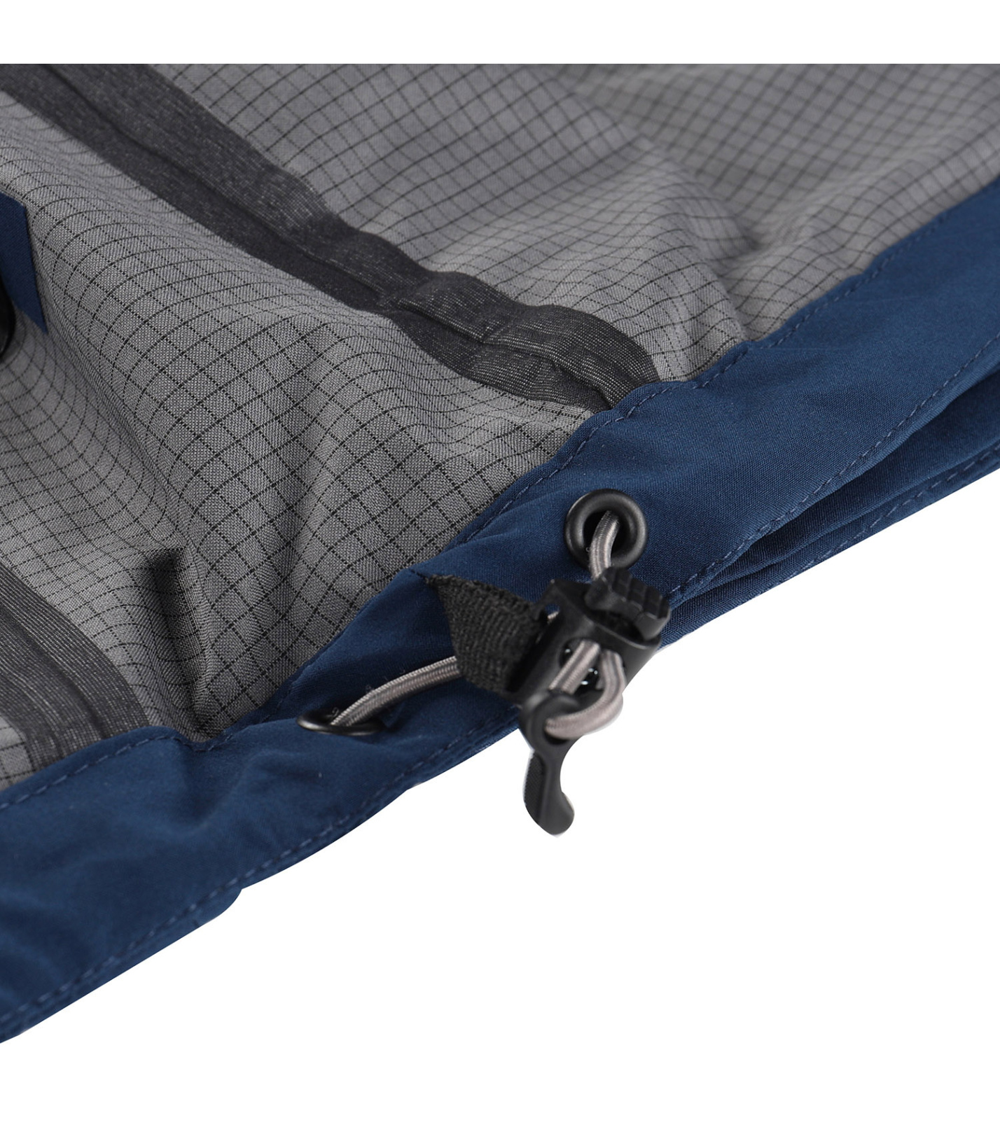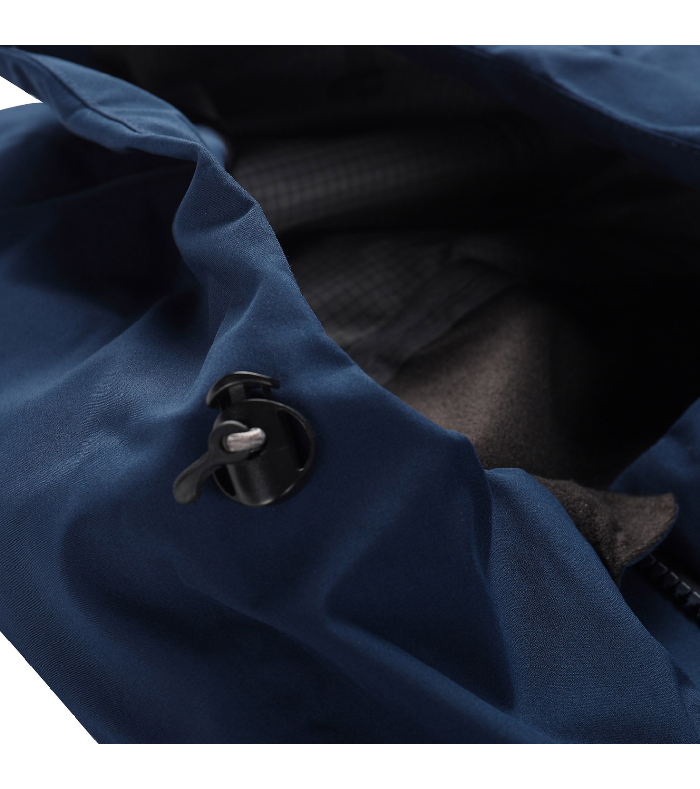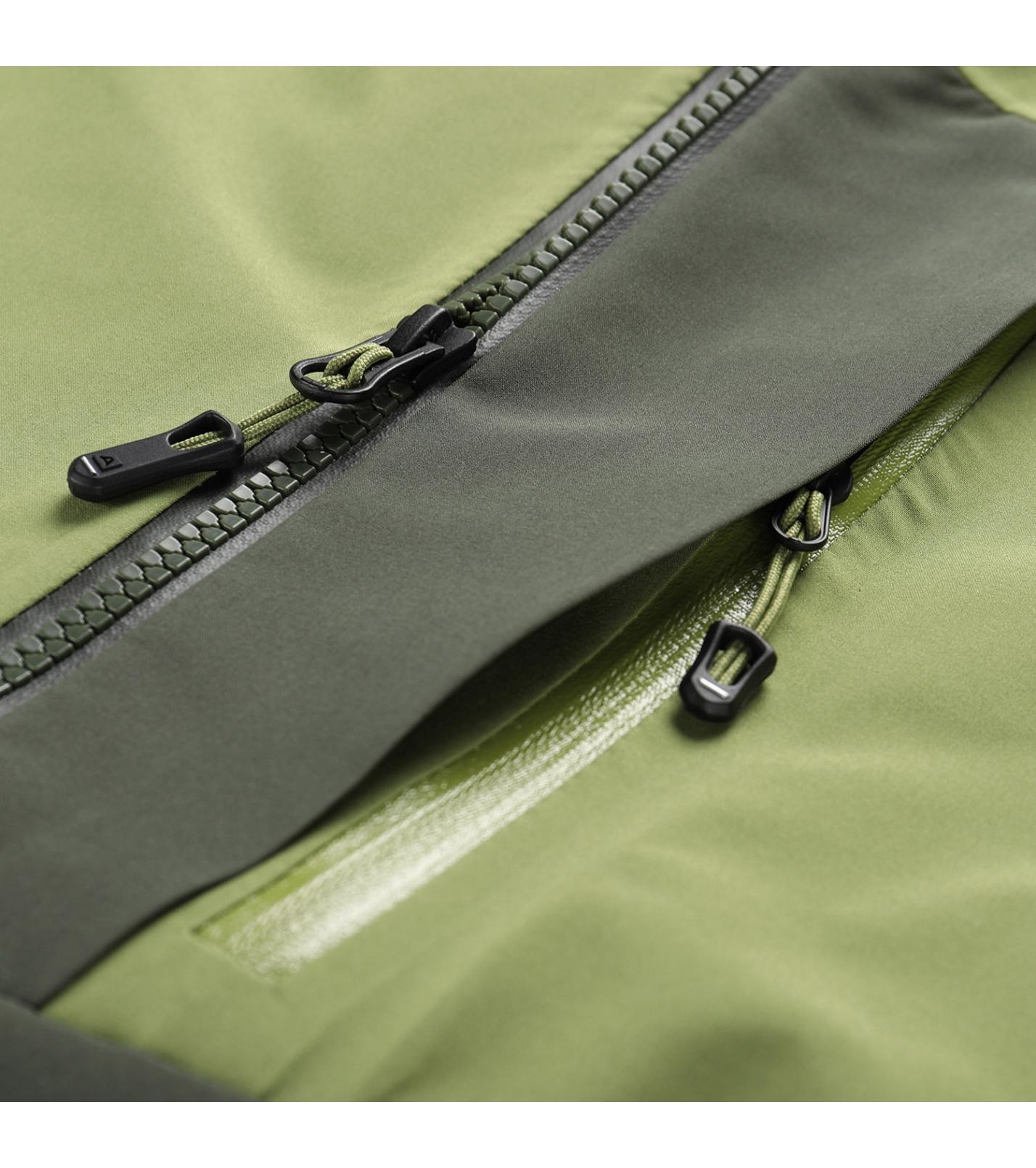 Bunda má anatomicky tvarovaný polopriliehavý strih s podlepenými švami, ktoré zabraňujú prenikaniu vlhkosti a chladu. Neodopínateľná kapucňa so sťahovaním a mäkká krytka pri brade poskytujú ďalšiu ochranu proti nepriazni počasia. Vodeodolný hlavný zips spolu s odvetrávaním v podpazuší zaisťujú účinnú reguláciu teploty aj pri intenzívnom pohybe. Pre väčší komfort sú rukávy opatrené sťahovaním na suchý zips a elastickou manžetou, zatiaľ čo spodný lem je vzadu predĺžený a nastaviteľný pomocou gumičky.